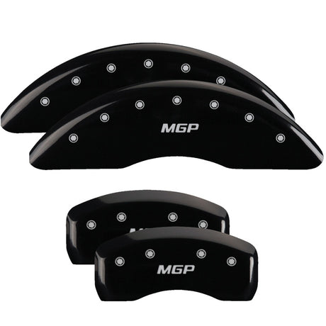 MGP 15215SMGPBK - 4 Caliper Covers Engraved Front & Rear Black finish silver ch