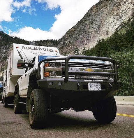 Road Armor 315VF26B - 15-19 Chevy 2500 Vaquero Front Bumper Full Guard 2in Receiver - Tex Blk