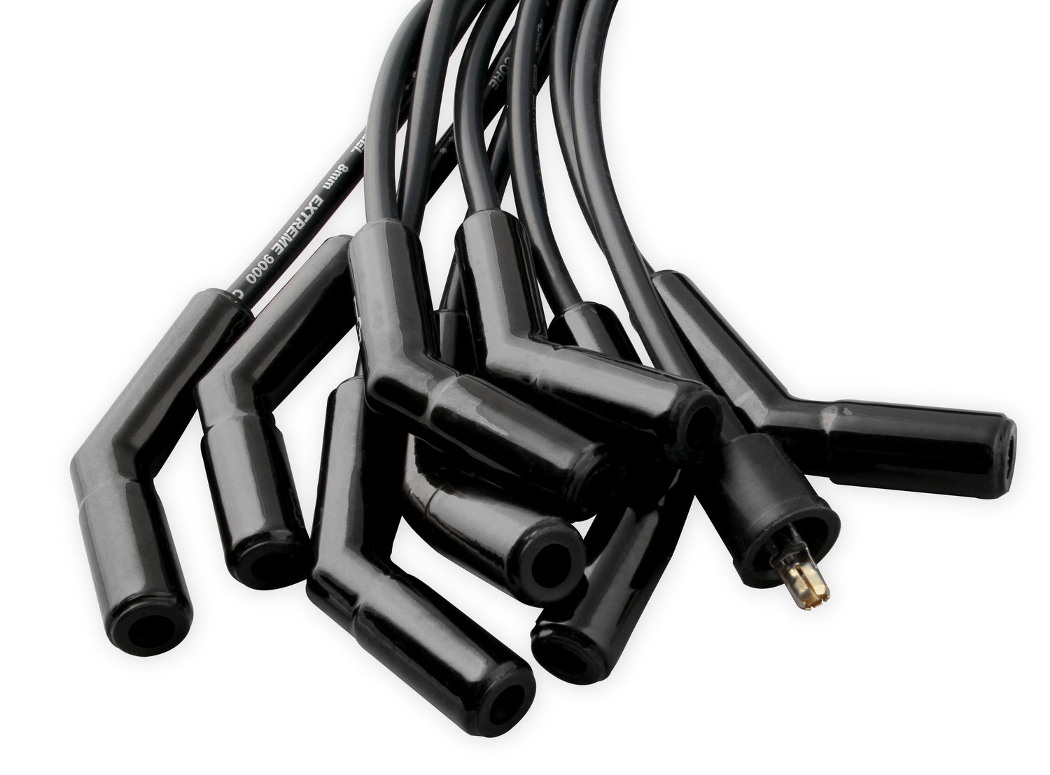 Extreme 9000 Black Ceramic Boot Spark Plug Wire Set; Universal w/Terminals For Male And Female Tower Caps; 8mm; 500 Ohms Per Foot; 135 Deg. Black Boots; Black;