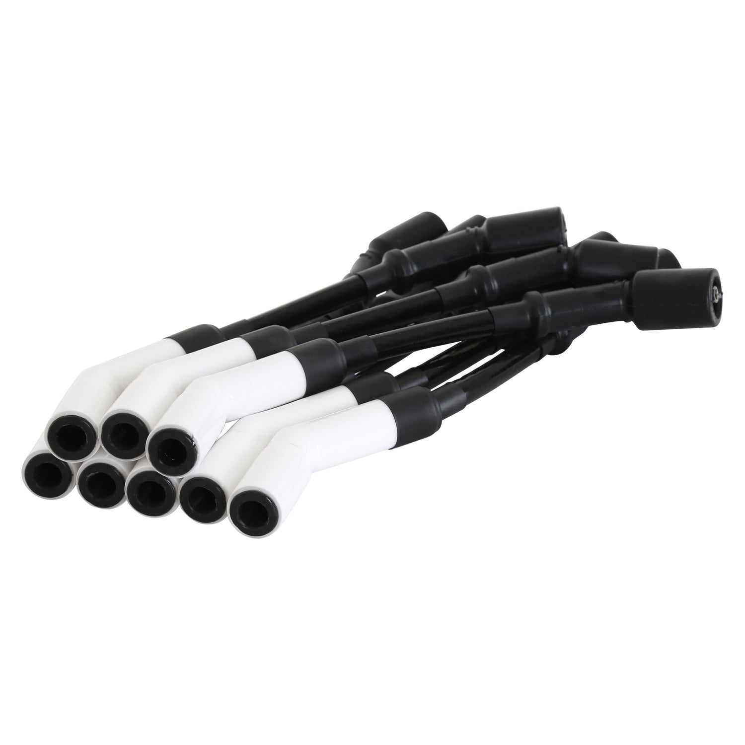 Extreme 9000 Ceramic Boot Spark Plug Wire Set; Custom Fit Race; 8mm; 500 Ohms Per Foot; 45 Deg. White Boots; LS3/4/7 Terminals; Mr. Gasket Inferno Shield Thermo Sleeving; Black;
