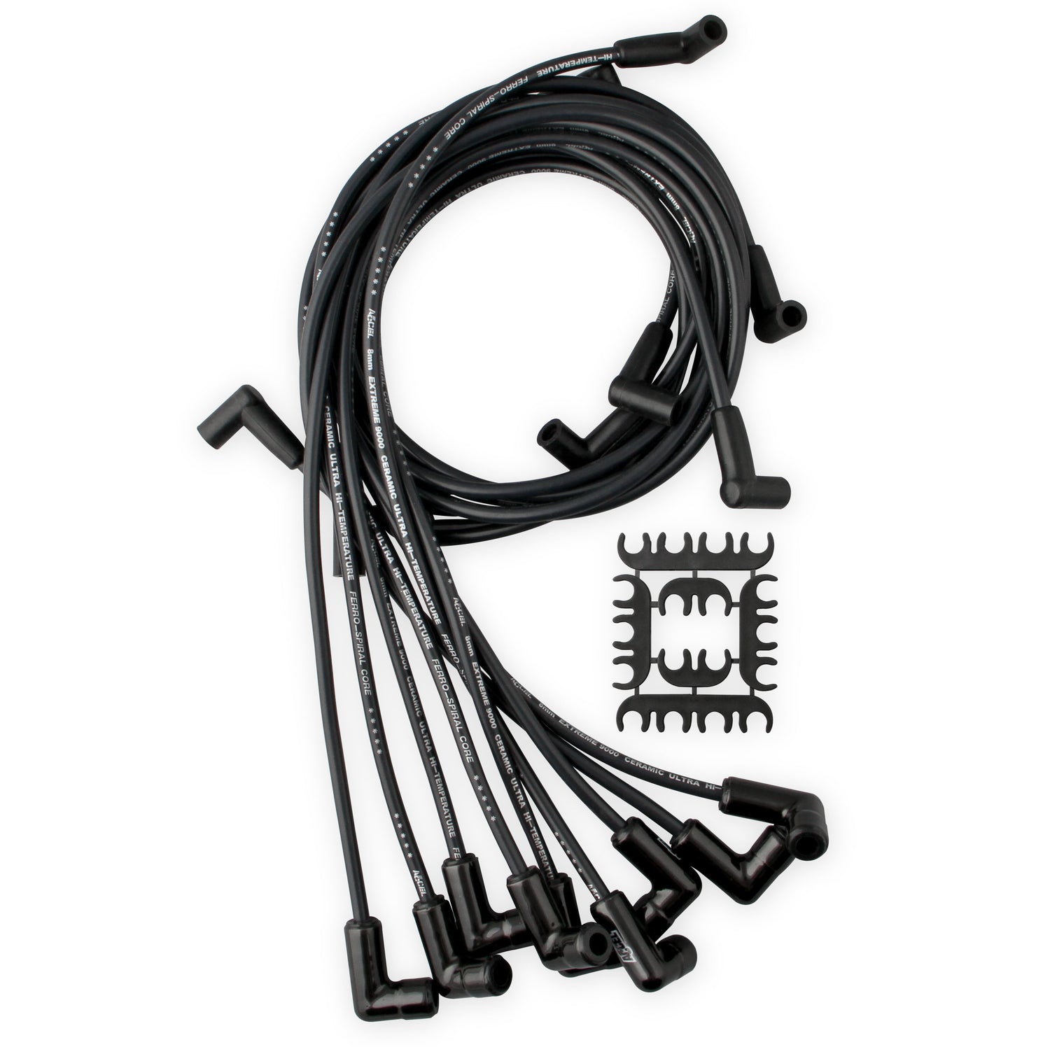 Do you want to put headers on your vehicle, but are afraid you may cook the spark plug wires? Just looking for a nice upgrade for your stock spark plug wires? If you answered yes to any of these questions, ACCEL has the wire set for you. Introducing ACCEL Extreme 9000 Ceramic Boot wires in Black! ACCEL Extreme 9000 Ceramic Boot Wires feature ultra high-temperature, double silicone, 8mm, 500 ohms/ft Ferro-Spiral core wire developed for performance use. The wire is rated at 600 degrees Fahrenheit peak and the black Ceramic boots withstand up to 2,000 degrees. Great for running headers with close tolerances, an engine bay with little room or an application with high under-hood temps. ACCEL Extreme 9000 wires offer excellent energy delivery to the spark plugs through stainless steel spark plug terminals, while providing the highest level of RFI/EMI suppression.