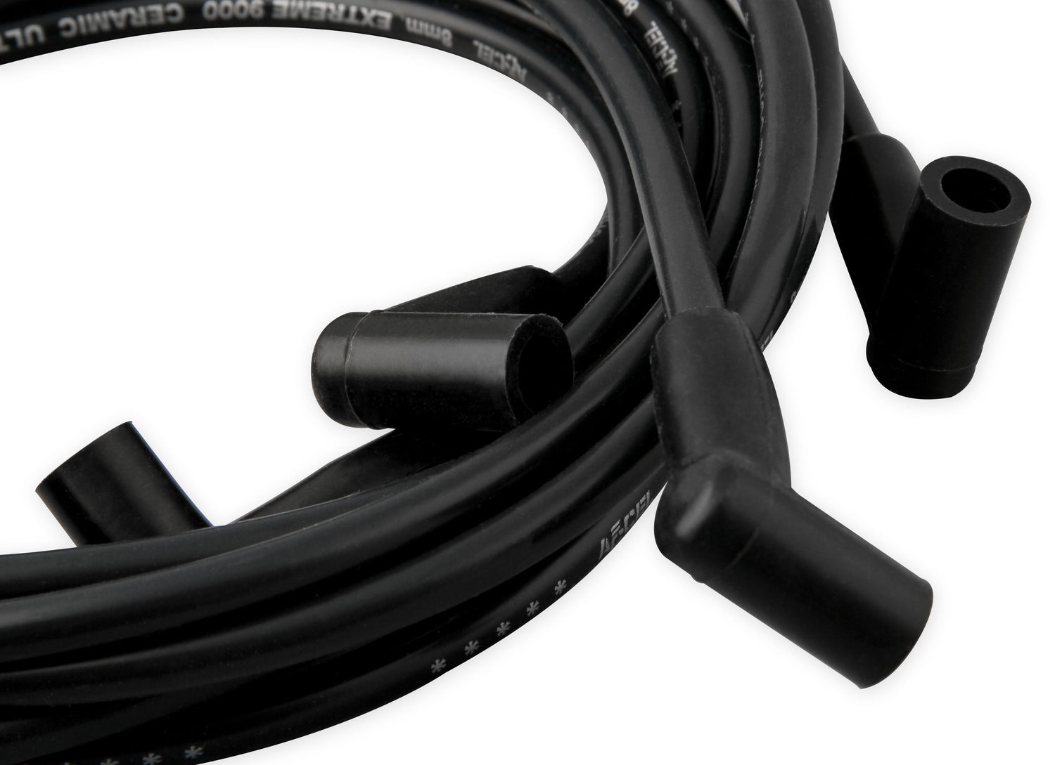 Extreme 9000 Black Ceramic Boot Spark Plug Wire Set; Fits w/HEI; Under Valve Cover; 8mm; 500 Ohms Per Foot; 90 Deg. Black Boots; Stainless Steel Plug Terminals; Black;
