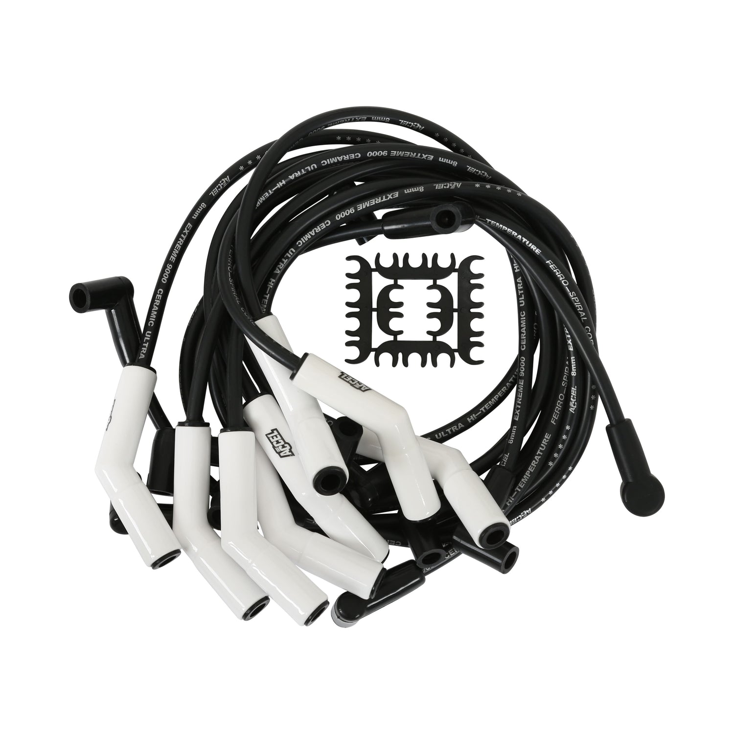 Extreme 9000 Ceramic Boot Spark Plug Wire Set; Fits w/EEC-IV; 8mm Ferro-Spiral Core Wire; 500 Ohms Per Foot; Black;