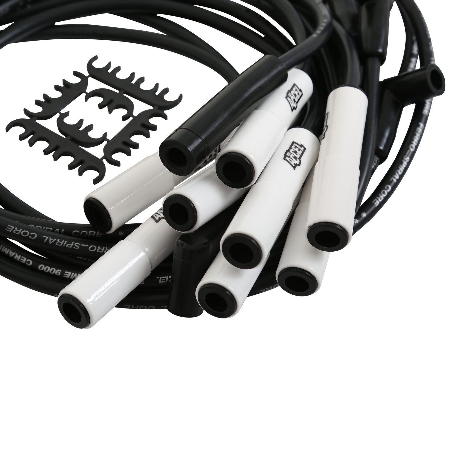 Extreme 9000 Ceramic Boot Spark Plug Wire Set; 8mm Ferro-Spiral Core Wire; 500 Ohms Per Foot; Black;