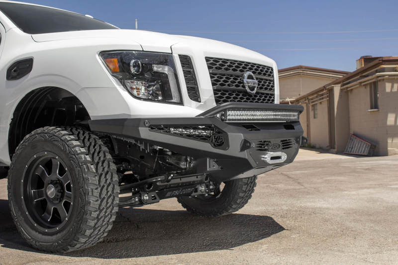 Addictive Desert Designs F917482860103 - 16-18 Nissan Titan XD HoneyBadger Front Bumper w/ Winch Mount