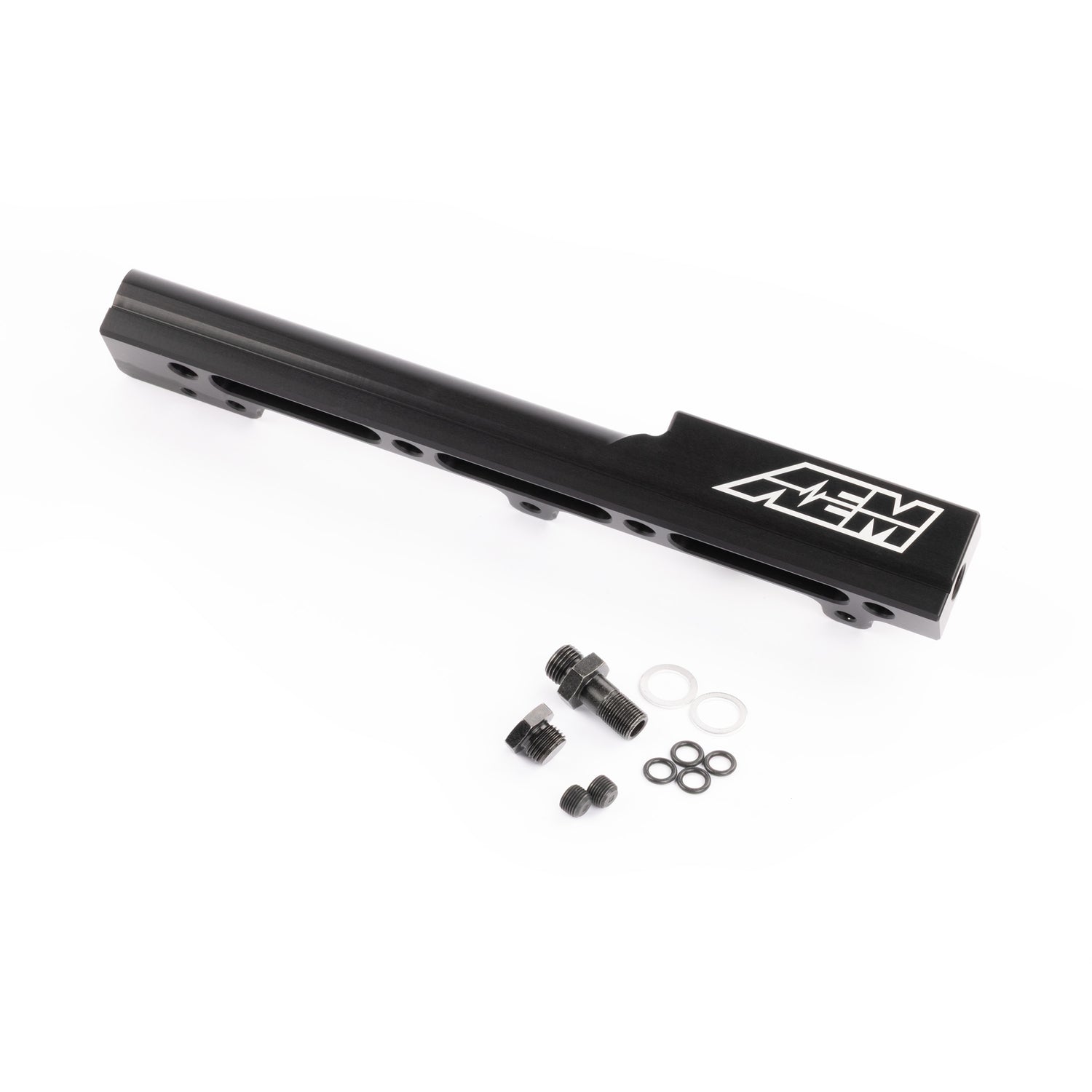 AEM High Volume fuel rails feature a 1/2-inch fuel bore to support fuel flow for applications up to 1,000 horsepower. This large bore also dampens backpressure pulses created by larger injectors and works perfectly with stock injector sizes. An additional 1/8th NPT port is included to accommodate a nitrous set up or fuel pressure gauge. A custom fuel line fitting is included for the factory fuel line, and in most cases the ends of each rail are pre tapped to accept -6 AN or 9/16"x18 fittings for users who want to use custom fuel lines.