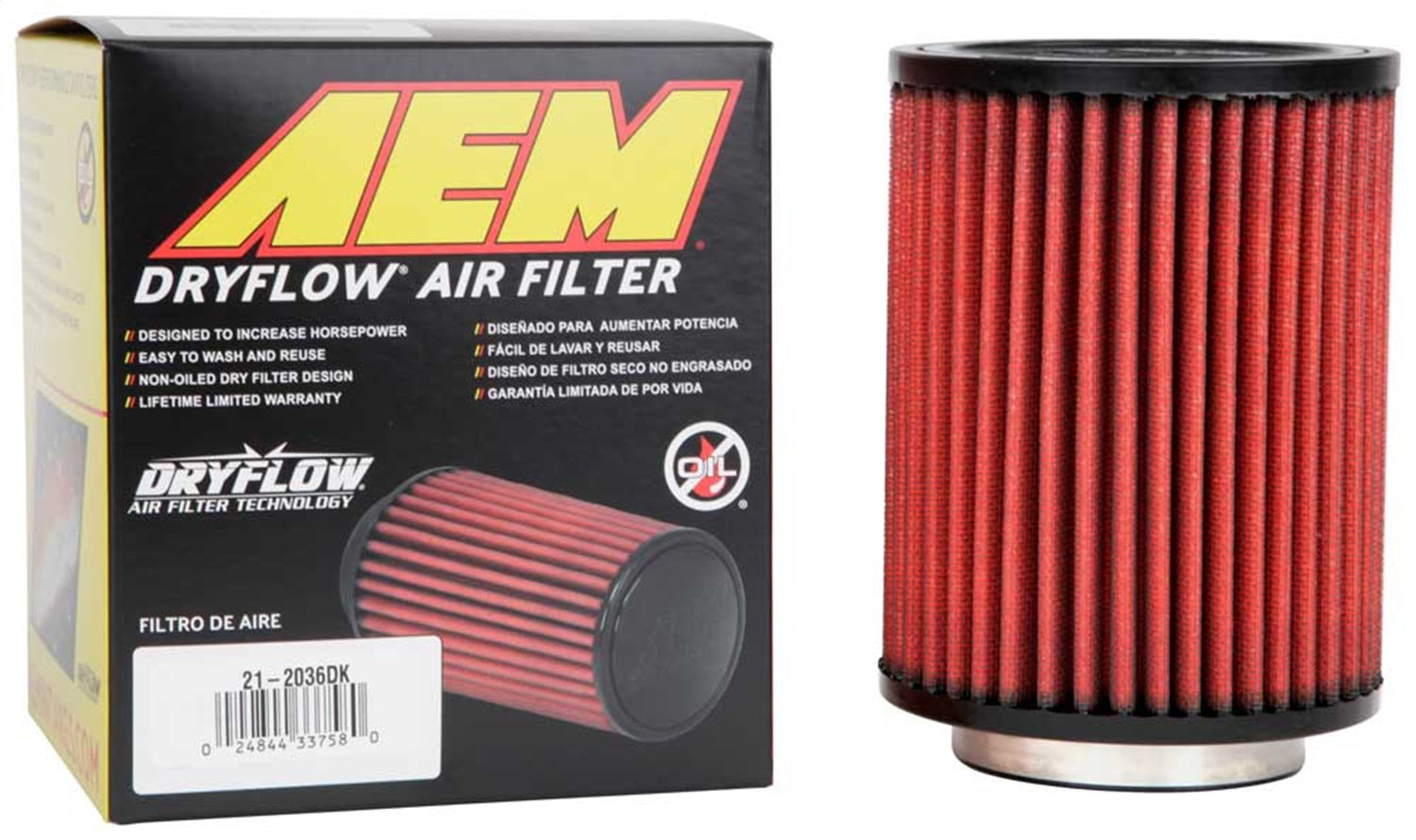AEM Dryflow Air Filters are washable synthetic air filters designed for an optimum combination of air flow, filtration, and performance. AEM Dryflow filters use an innovative high performance oil-free filtration material that allows easy cleaning, durable service, and excellent filtration.