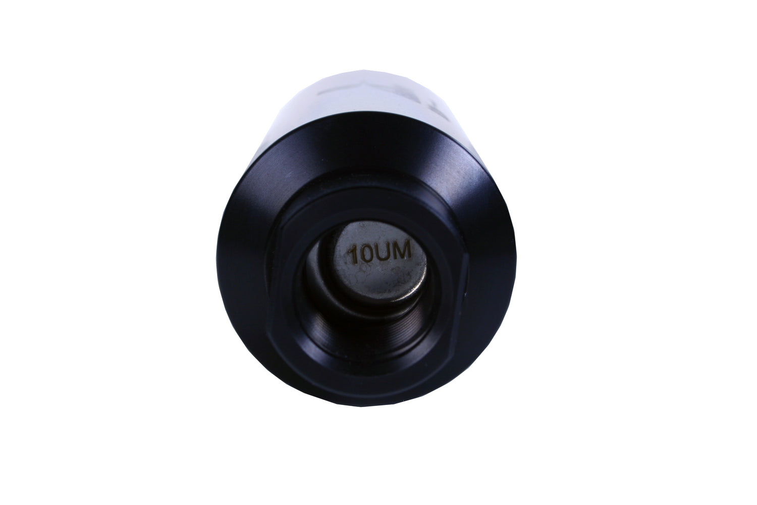 Fuel Filter - In-Line - 10 Micron - Microglass Element - 12 AN Female O-Ring Inlet - 12 AN Female O-Ring Outlet - Aluminum - Black Anodized - Each