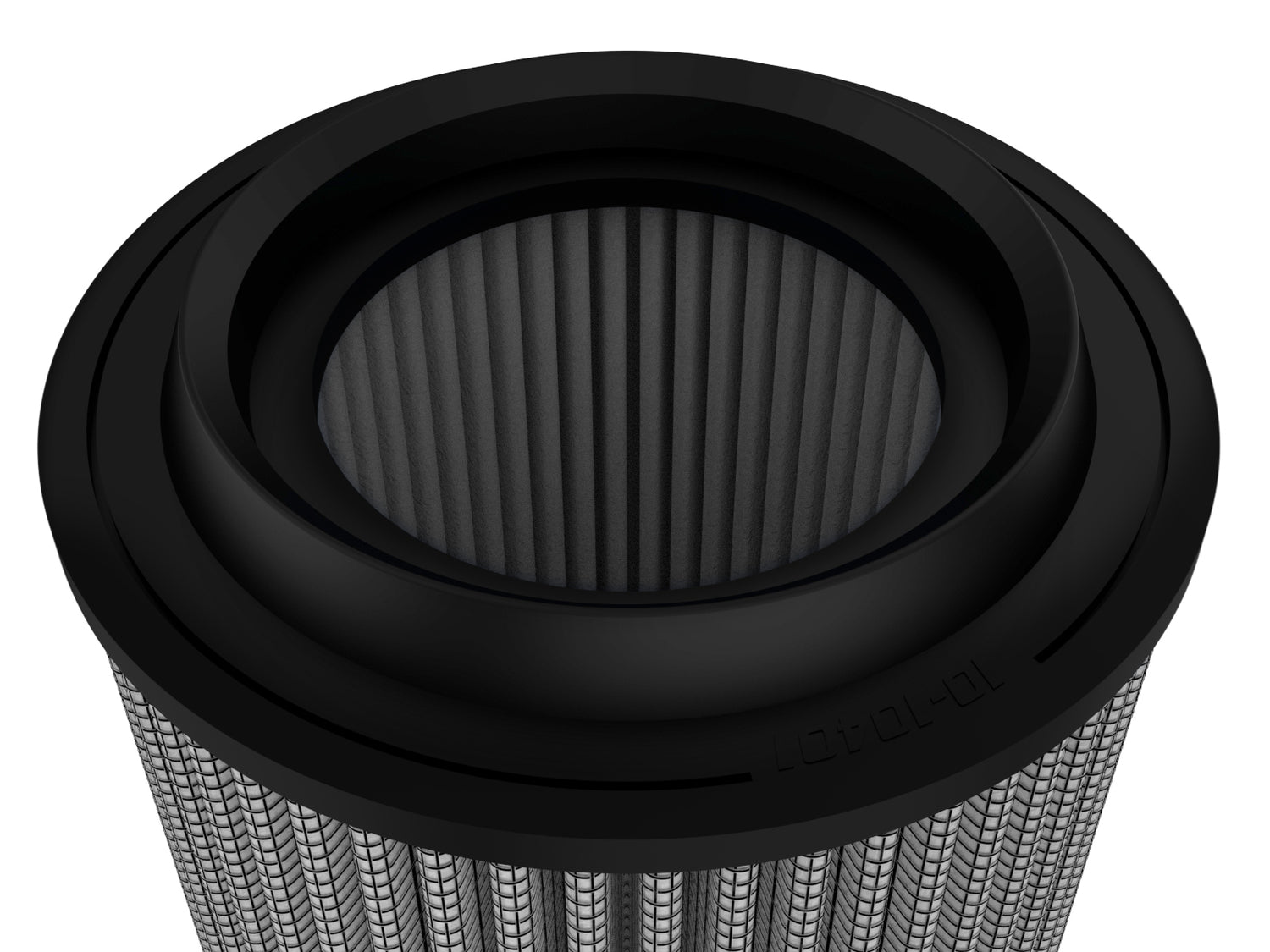 This filter features three layers of oil-free synthetic media and requires no oil during maintenance to provide maximum convenience. Its progressive layering provides great filtration efficiency and dust holding capacity, while its inverted top makes for more filter surface area, resulting in longer service intervals. This media is best suited for street and light off-road use. Pro DRY S filters are easily recharged with aFe's POWER CLEANER. aFe POWER performance air filters use a rounded, evenly spaced pleat design which allows for more usable filter surface area, providing increased flow and greater dust holding capacity. This aFe POWER performance air filter is constructed with a polyurethane base and top. Unlike other materials that degrade after repeated heat cycles in an engine bay, polyurethane maintains its original molded shape.