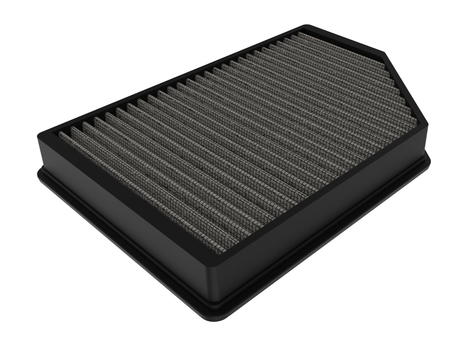 This filter features three layers of oil-free synthetic media and requires no oil during maintenance to provide maximum convenience. Its progressive layering provides great filtration efficiency and dust holding capacity. This media is best suited for street use. Pro DRY S filters are easily recharged with aFe's POWER CLEANER. aFe POWER performance air filters use a rounded, evenly spaced pleat design which allows for more usable filter surface area, providing increased flow and greater dust holding capacity. This pliable sealing surface conforms to even the most uneven filter housing, making for a perfect filter fit and sealing surface every time. This design eliminates the use of gaskets or sealants and always goes back to its original form. All aFe POWER flat panel performance air filters are constructed with a full 360-degree polyurethane frame. Unlike other materials that degrade after repeated heat cycles in an engine bay, polyurethane maintains its original molded shape.