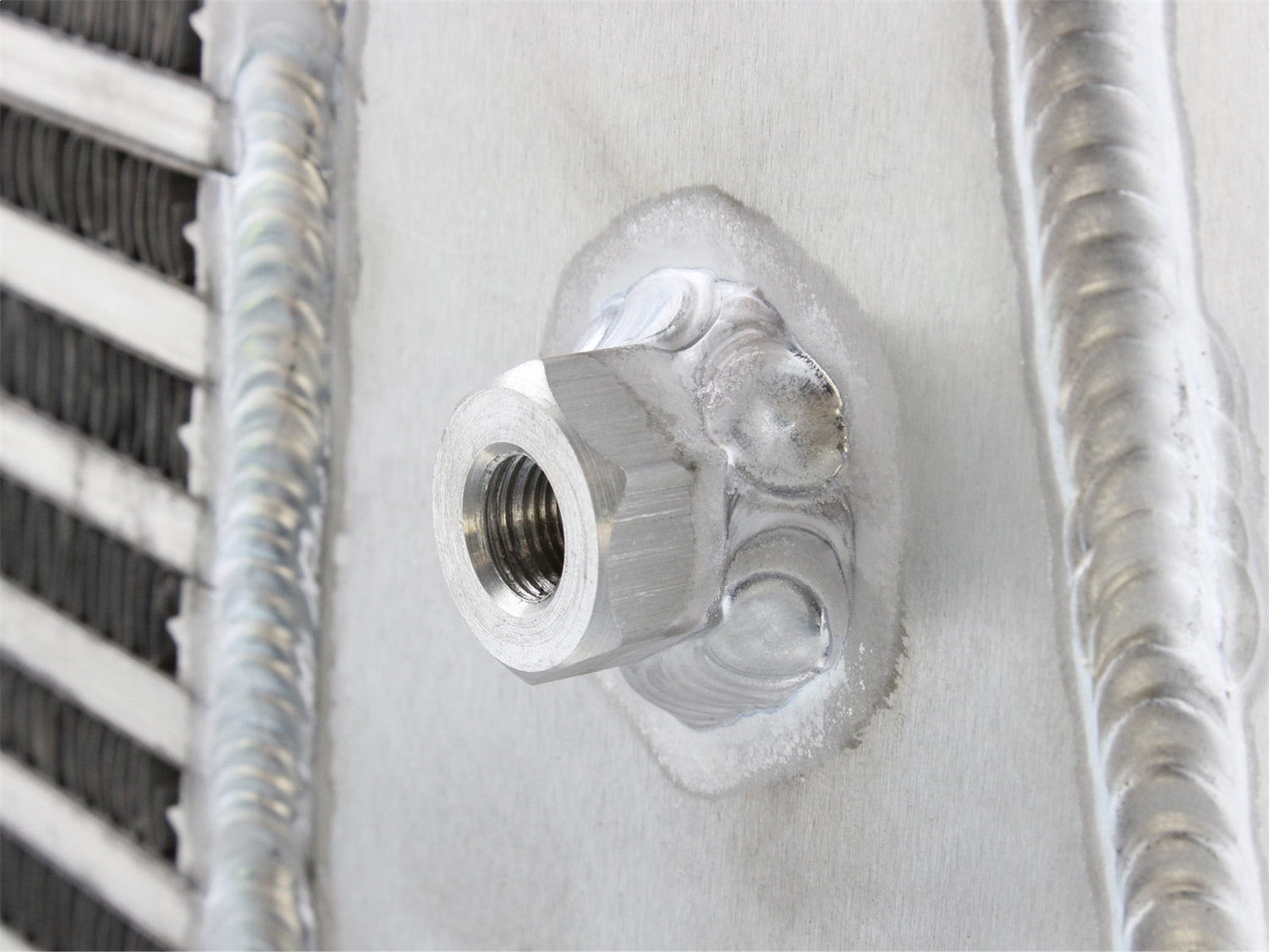 Bladerunner Intercoolers represent the next generation of intercoolers. The Bladerunner intercoolers utilize a 3 in. bar and plate design that out performs OE style tube and fin core designs. The end tanks are constructed out of 3/16 in. TIG welded aluminum plate tanks that incorporate three multi-directional vanes that efficiently direct air flow through the entire core for maximum cooling. The Bladerunner intercooler also comes with 4 1/8 in. pre-tapped ports for easy gauge installation as well as other auxiliary input options. Tested at 200psi which is perfect for the high boost applications. In recent testing the Bladerunner intercooler produced a 200 deg. temperature drop and a 100 deg. EGT drop as well as increasing air flow by 30 percent. Dont waste your time and money on modified factory intercooler. Invest in the aFe Bladerunner intercooler. the most sophisticated intercooler design on the planet.