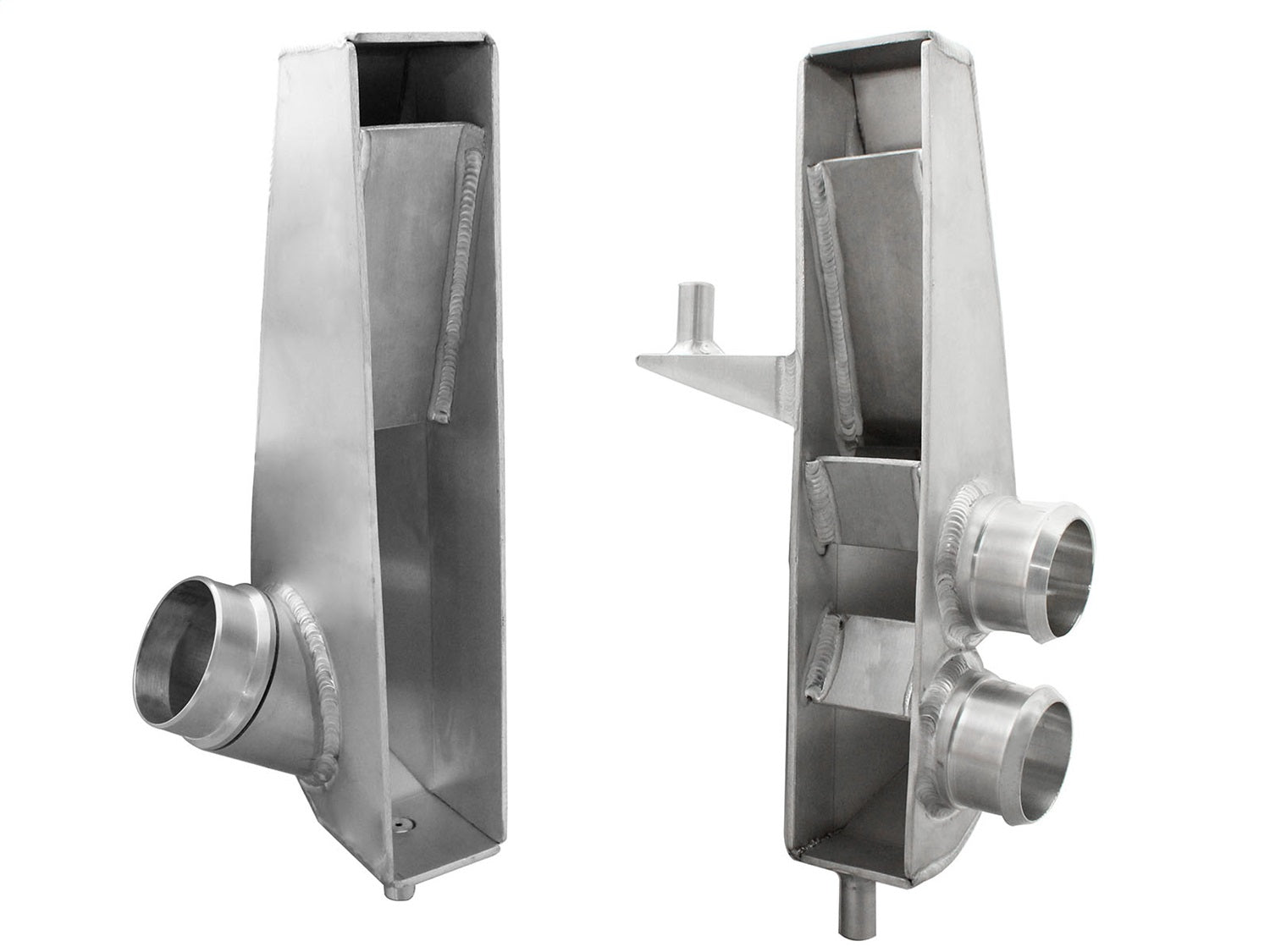 Bladerunner Intercoolers represent the next generation of intercoolers. The Bladerunner intercoolers utilize a 3 in. bar and plate design that out performs OE style tube and fin core designs. The end tanks are constructed out of 3/16 in. TIG welded aluminum plate tanks that incorporate three multi-directional vanes that efficiently direct air flow through the entire core for maximum cooling. The Bladerunner intercooler also comes with 4 1/8 in. pre-tapped ports for easy gauge installation as well as other auxiliary input options. Tested at 200psi which is perfect for the high boost applications. In recent testing the Bladerunner intercooler produced a 200 deg. temperature drop and a 100 deg. EGT drop as well as increasing air flow by 30 percent. Dont waste your time and money on modified factory intercooler. Invest in the aFe Bladerunner intercooler. the most sophisticated intercooler design on the planet.