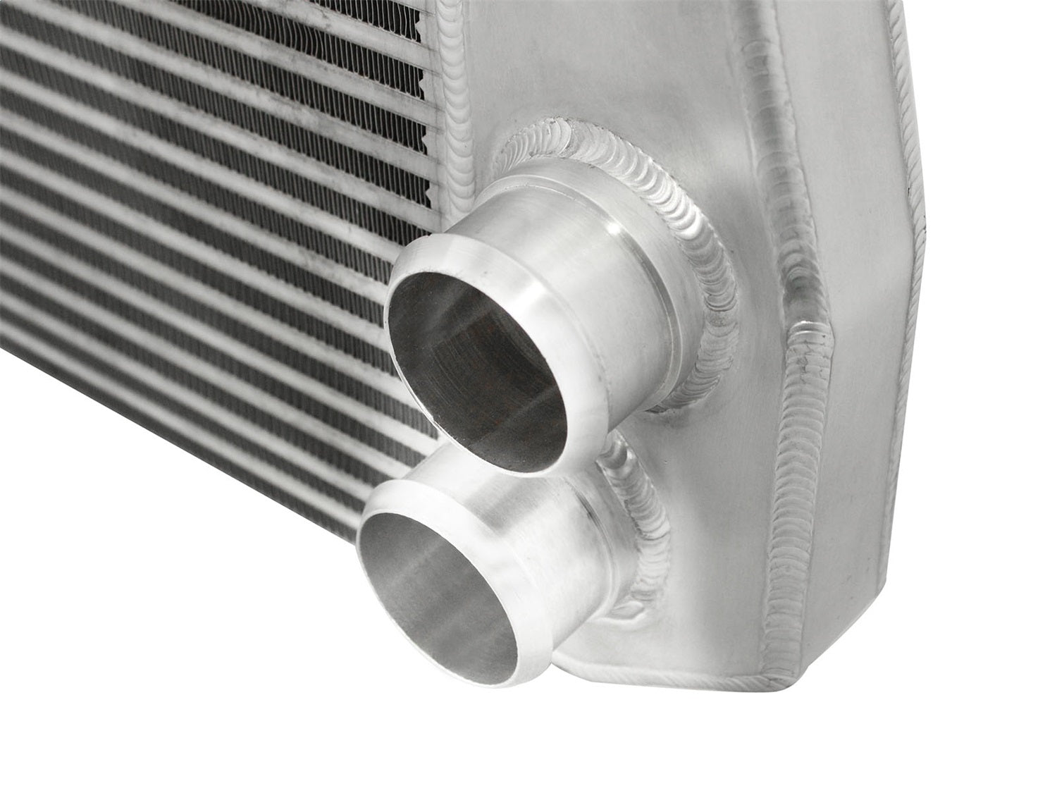 Bladerunner Intercoolers represent the next generation of intercoolers. The Bladerunner intercoolers utilize a 3 in. bar and plate design that out performs OE style tube and fin core designs. The end tanks are constructed out of 3/16 in. TIG welded aluminum plate tanks that incorporate three multi-directional vanes that efficiently direct air flow through the entire core for maximum cooling. The Bladerunner intercooler also comes with 4 1/8 in. pre-tapped ports for easy gauge installation as well as other auxiliary input options. Tested at 200psi which is perfect for the high boost applications. In recent testing the Bladerunner intercooler produced a 200 deg. temperature drop and a 100 deg. EGT drop as well as increasing air flow by 30 percent. Dont waste your time and money on modified factory intercooler. Invest in the aFe Bladerunner intercooler. the most sophisticated intercooler design on the planet.