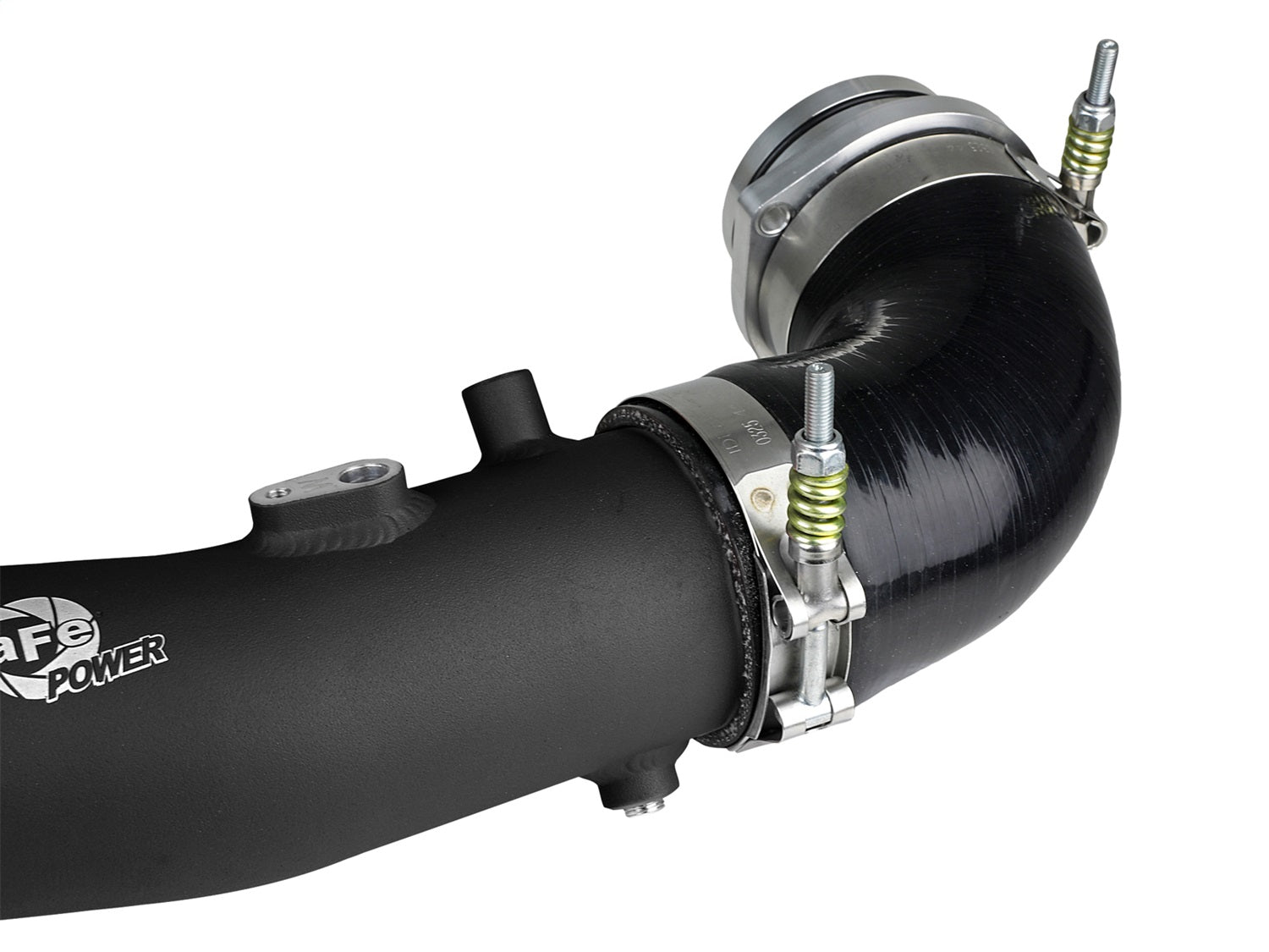 Smooth transitions in the mandrel-bent aluminum tubing decrease turbulence and minimize pressure loss, increasing horsepower and torque. This tube kit includes high quality stainless-steel, spring loaded T-bolt clamps and heavy-duty 5-ply polyester reinforced silicone couplings. A factory-style billet aluminum quick-connect adapter with an O-ring seal ensures a leak-free fit while maintaining superior strength and durability. It's finished in wrinkle black powder coating with a unique laser-etched aFe POWER logo for a custom look.
