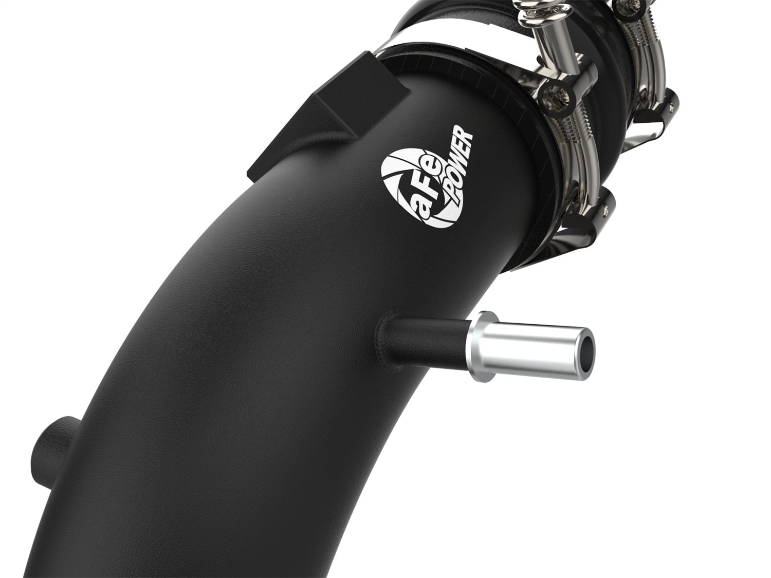 Smooth transitions in the mandrel-bent aluminum pipes decrease turbulence and minimize pressure loss, increasing horsepower and torque. The BladeRunner charge pipe kit provides a smooth transition between the turbo and the engine for lower operating temperatures and increased power. This charge pipe kit features a factory style billet aluminum quick-connect adapter with an o-ring seal to ensure a leak-free fit while maintaining superior strength and durability. Finished in wrinkle black powder coating with a unique laser-etched aFe POWER logo for a custom look.