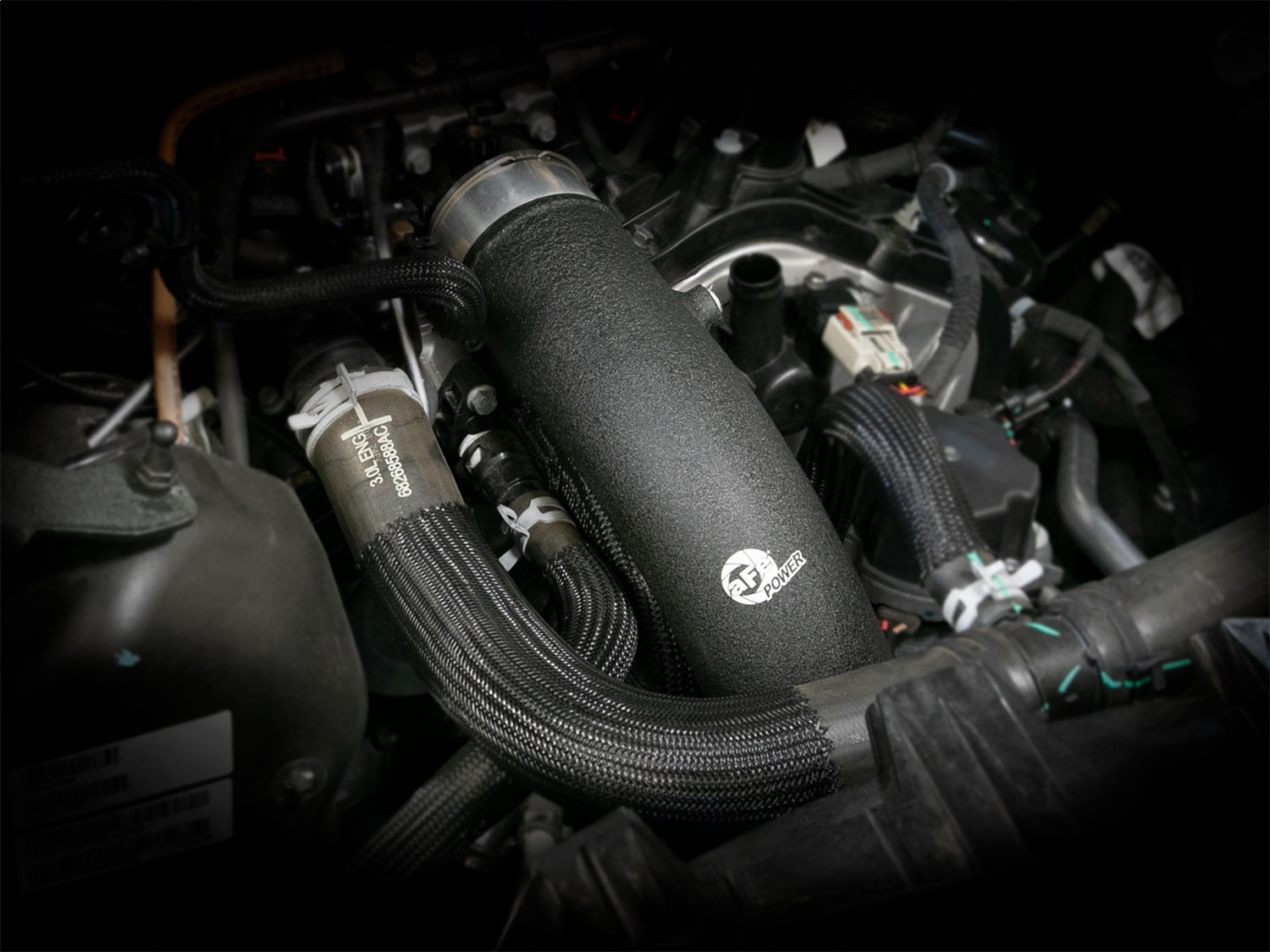 Smooth transitions in the mandrel-bent aluminum pipes decrease turbulence and minimize pressure loss, increasing horsepower and torque. This kit includes high-quality, stainless-steel, spring-loaded T-bolt clamps and heavy-duty, 5-ply, polyester reinforced silicone couplings. This charge pipe kit also features factory style billet aluminum quick-connect adapters with o-ring seals to ensure a leak-free fit while maintaining superior strength and durability. Finished in wrinkle black powder coating with a unique laser-etched aFe POWER logo for a custom look.