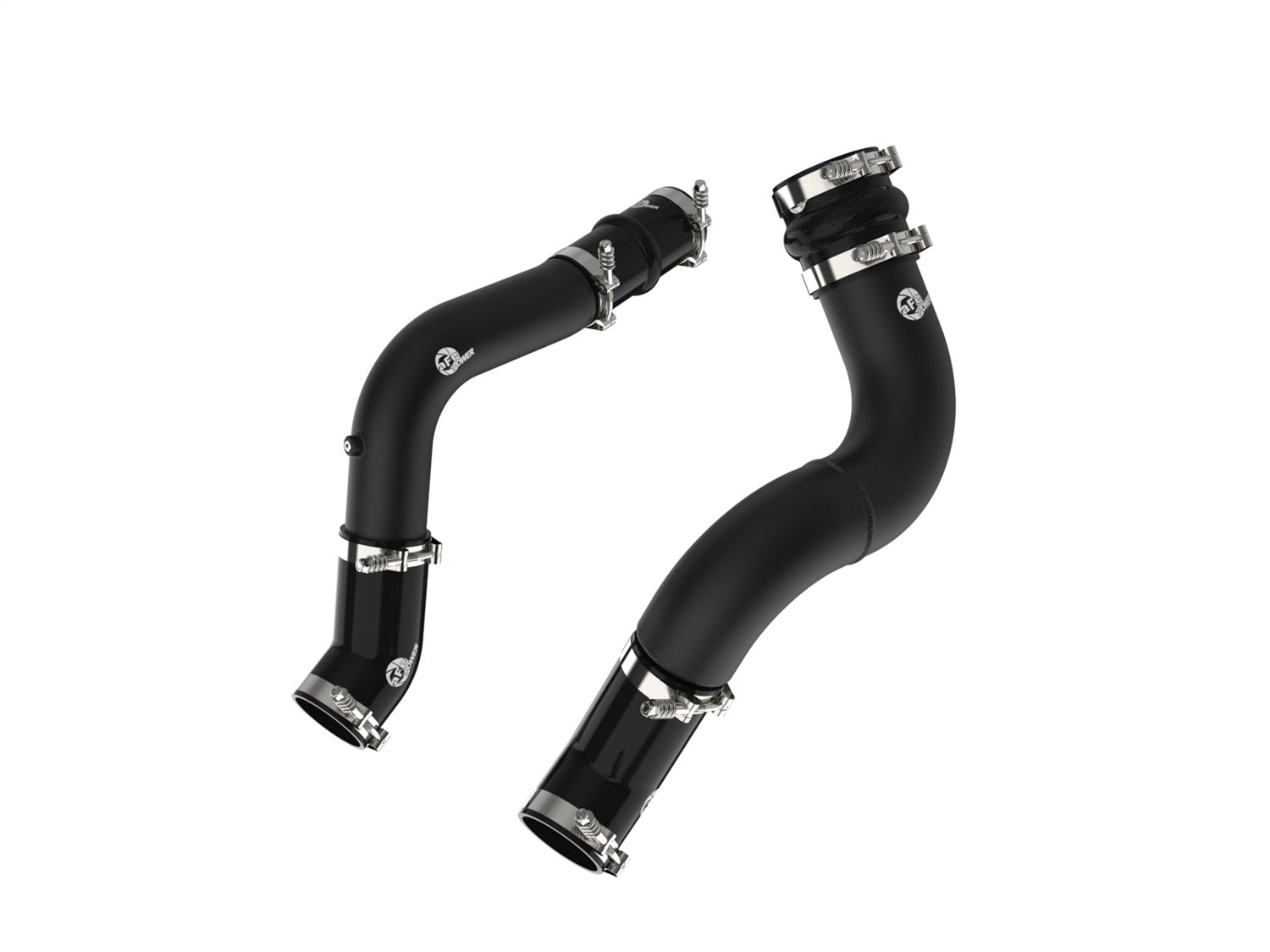 Smooth transitions in the mandrel-bent aluminum pipes decrease turbulence and minimize pressure loss, increasing horsepower and torque. This charge pipe kit provides a smooth transition between the turbo and the engine for lower operating temperatures and increased power. This kit includes high-quality, stainless-steel, spring-loaded T-Bolt clamps and heavy-duty, 5-ply, polyester reinforced silicone couplings for superior strength and durability. Finished in wrinkle black powder coating with a unique laser-etched aFe POWER logo for a custom look.