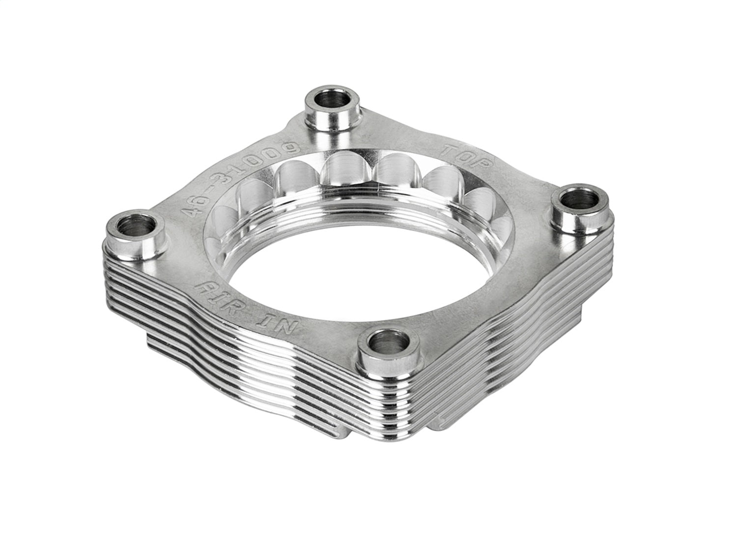 Silver Bullet throttle body spacers create turbulence in the air flow at the point just prior entry into the engine increasing horsepower, torque and improving throttle response and fuel efficiency. Silver Bullet throttle body spacers are constructed out of durable T-6061 billet aluminum and using a unique serrated/helix entry to create turbulence at the manifold while eliminating the annoying whistle found in other helix only throttle spacers.