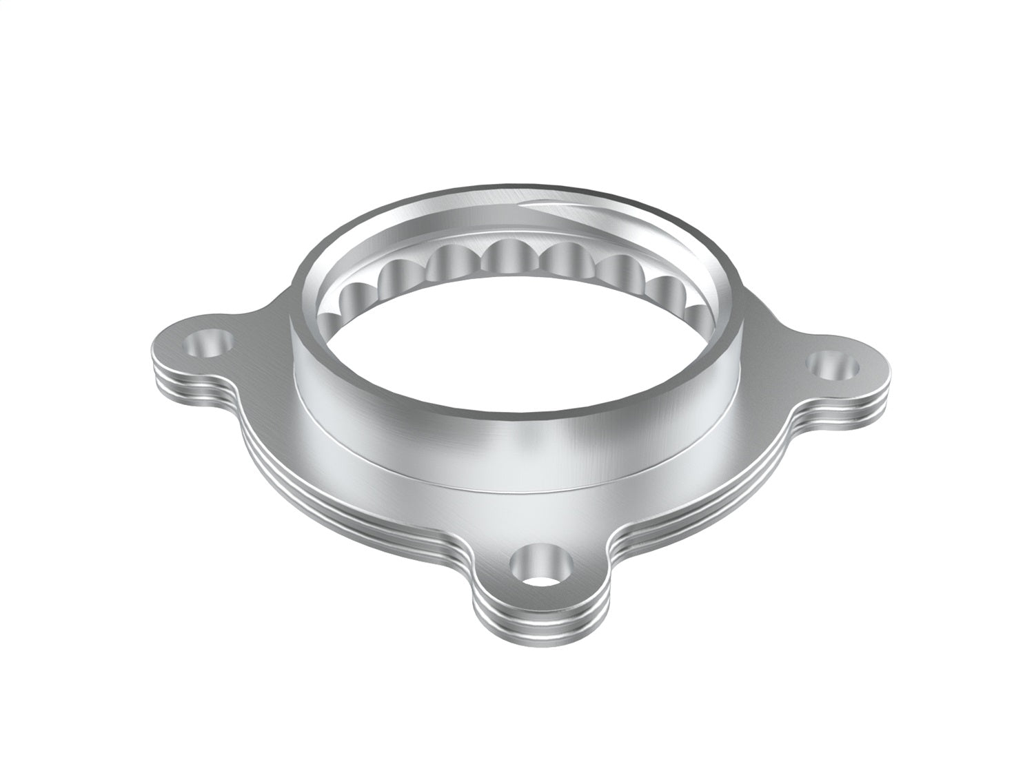 The Serrated/Helix combination design creates intake turbulence in the combustion chamber. This turbulence breaks up the fuel which creates a more complete combustion cycle increasing horsepower, torque and improving throttle response. The Serrated/Helix combination design also reduces intake whistle that occurs with Helix only designs. All Silver Bullet Throttle Body Spacers are constructed from 6061-T6 billet aluminum precision machined for light weight, high strength and perfect fit and finish. This Silver Bullet throttle body spacer uses all factory mounting locations providing stability and a hassle-free installation.