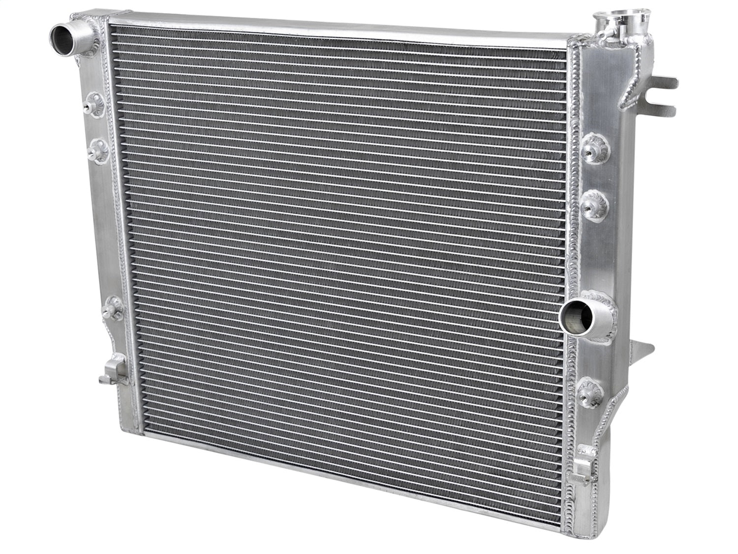 BladeRunner Street Series Radiators feature a thicker tube and fin core, which provides greater heat dissipation and better coolant flow than the factory radiator for optimum cooling efficiency. With aircraft-grade aluminum construction and a larger core, BladeRunner Street Series Radiators offer increased coolant capacity over stock to help maintain cooler operating temperatures longer. The fabricated end tanks are constructed out of 1/8in aluminum plates for strength and durability. 100% TIG-welded for race proven strength and durability. BladeRunner Street Series Radiators include a brass drain valve with barbed fitting to easily connect a hose for draining coolant. Utilizes the factory mounting locations to provide stability for a hassle-free installation. Brushed aluminum finish with an aFe POWER logo painted on the front. aFe BladeRunner silicone radiator hose kits are available separately (2007-11 Jeep JK: 46-50004-B, 2012-18 Jeep JK: 46-50014-B).