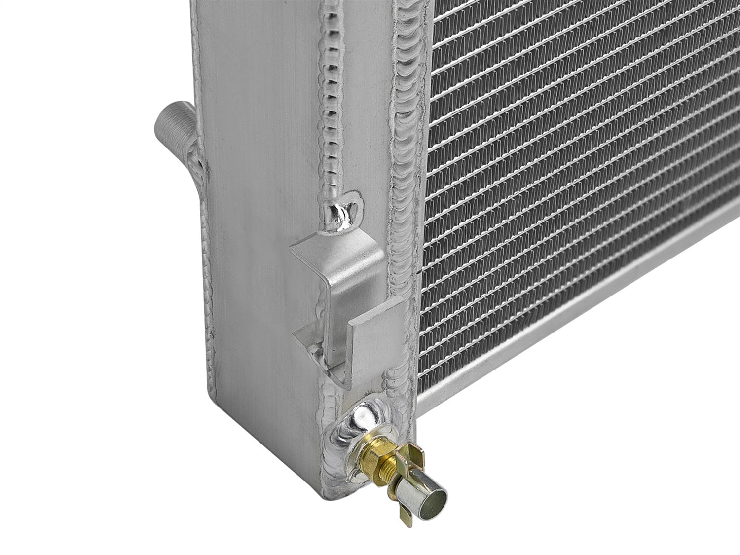 Oversized Tube and Fin Core: This BladeRunner Street Series Radiator features a 2" tube and fin core which provides greater heat dissipation and better coolant flow than the factory radiator for optimum cooling efficiency. End Tanks: The fabricated end tanks are constructed out of 1/8" aluminum plates for strength and durability. Billet Aluminum Inlet/Outlet: Billet aluminum inlet and outlet for long-lasting reliability. TIG-Welded: 100% TIG-welded for proven strength and durability. Brass Drain Valve: BladeRunner Street Series Radiators include a brass drain valve with fitting to easily connect a hose for draining coolant. Perfect Fit: Utilizes the factory mounting locations to provide stability for a hassle-free installation. Custom Appearance: Brushed aluminum finish with an aFe POWER logo painted on the front. When it comes to engineering for power, performance, protection and value, aFe POWER is the only choice.
