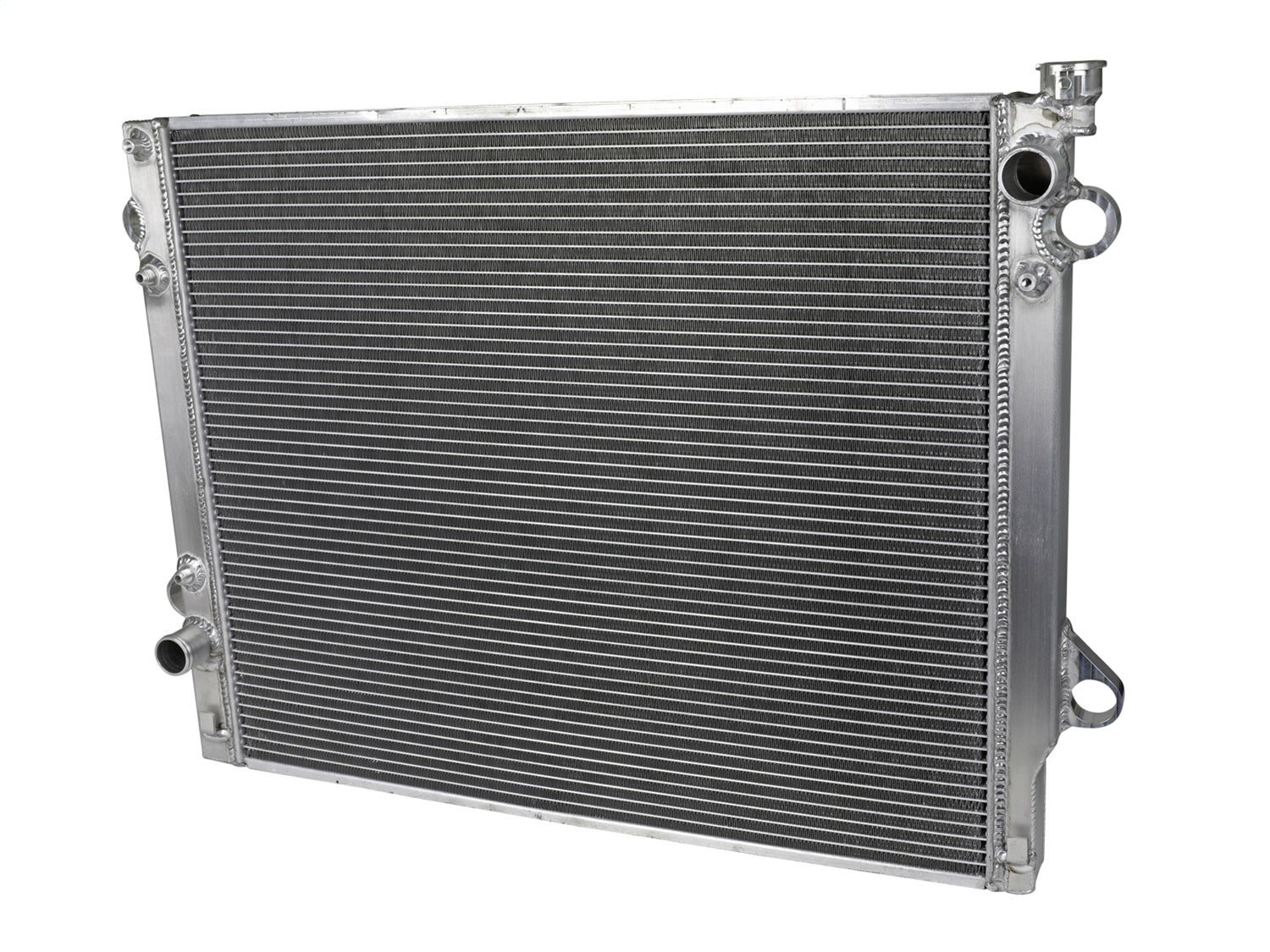 This BladeRunner Street Series Radiator features a 1-9/16" thick tube and fin core which provides greater heat dissipation and better coolant flow than the factory radiator for optimum cooling efficiency. The fabricated end tanks are constructed out of 1/8" aluminum plates for strength and durability. Billet aluminum inlet and outlet for long-lasting reliability. 100% TIG-welded for proven strength and durability. BladeRunner Street Series Radiators include a brass drain valve with fitting to easily connect a hose for draining coolant. Utilizes the factory mounting locations to provide stability for a hassle-free installation. Brushed aluminum finish with an aFe POWER logo painted on the front.