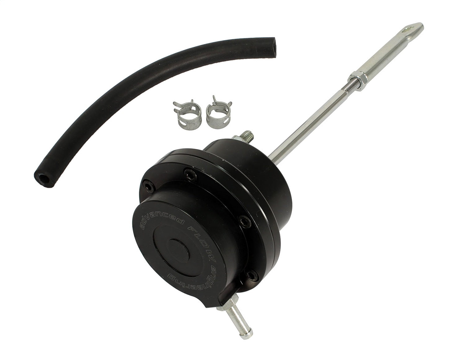 aFe Power introduces an all new BladeRunner GT Series Wastegate Actuator upgrade for Ford Diesel Trucks 99.5-03 with V8-7.3L (td) engine. The GT Series wastegate actuator is constructed out of light weight black anodized CNC 6061 billet aluminum for maximum strength and style, with locking jam nut for precise boost pressure settings. This unit come preset to factory settings and require no modification of turbocharger for a hassle-free installation. 6061 Billet Aluminum Construction: Constructed from 6061 billet aluminum precision machined for light weight, high strength and perfect fit and finish. Direct OE Fitment: Bolts up to factory mounting locations and requires no modification to the turbocharger for a hassle-free installation. Heavier Spring & Larger Diaphragm: Keeps wastegate valve seated longer which maintains power, torque in mid-range acceleration and prevents wastegate creep. aFe Badging: The wastegate comes with a unique laser-etched aFe Power logo for an aggressive style. Hassle-Free Installation: This is a direct bolt-on upgrade, all necessary hardware included with all connections to the turbo compatible with the OE geometry for a quick, hassle-free installation. Emissions Disclaimer: This product does not require a CARB EO#.