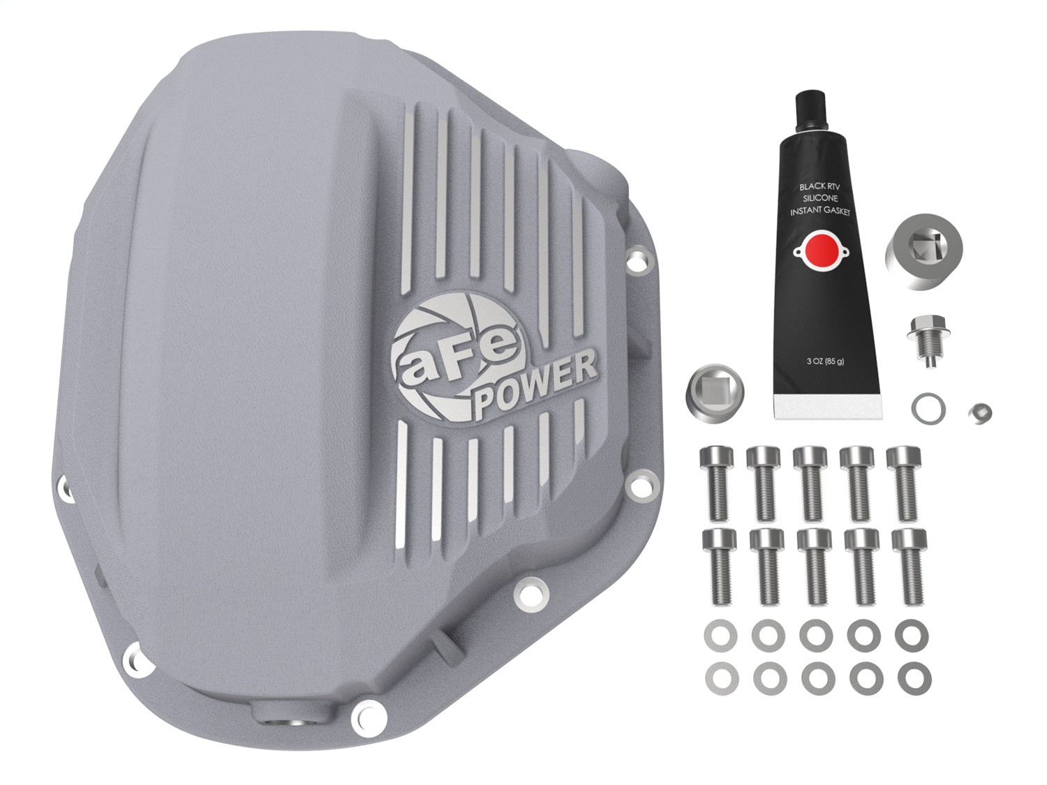 aFe Powers new rear differential cover brings performance engineering to the protection of your axles differential. This differential cover is constructed out of durable die cast A380 aluminum with reinforced ribs and wrinkle black powder coating for maximum strength and styling. This cover comes with all necessary hardware and includes an o-ring for a leak free seal. This cover has about a 5 quart lube capacity at the factory line; factory cover holds about 4 quarts. Built-in internal and external fins transfer heat from the fluid to the outside air for maximum cooling. This system incorporates a large magnetic drain and fill plug that captures loose particles for maximum rear-end protection. Pre-installed large oil level sight glass with calibration plug set to the factory fluid level to eliminate overfilling.