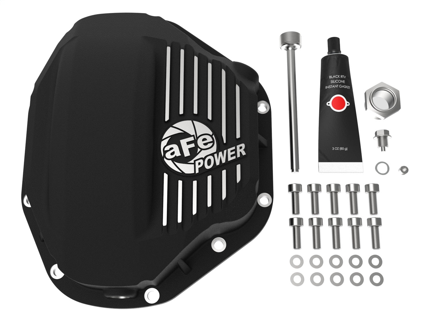 aFe Powers new rear differential cover brings performance engineering to the protection of your axles differential. This differential cover is constructed out of durable die cast A380 aluminum with reinforced ribs and wrinkle black powder coating for maximum strength and styling. This cover comes with all necessary hardware and includes an o-ring for a leak free seal. This cover has about a 5 quart lube capacity at the factory line; factory cover holds about 4 quarts. Built-in internal and external fins transfer heat from the fluid to the outside air for maximum cooling. This system incorporates a large magnetic drain and fill plug that captures loose particles for maximum rear-end protection. Pre-installed large oil level sight glass with calibration plug set to the factory fluid level to eliminate overfilling.
