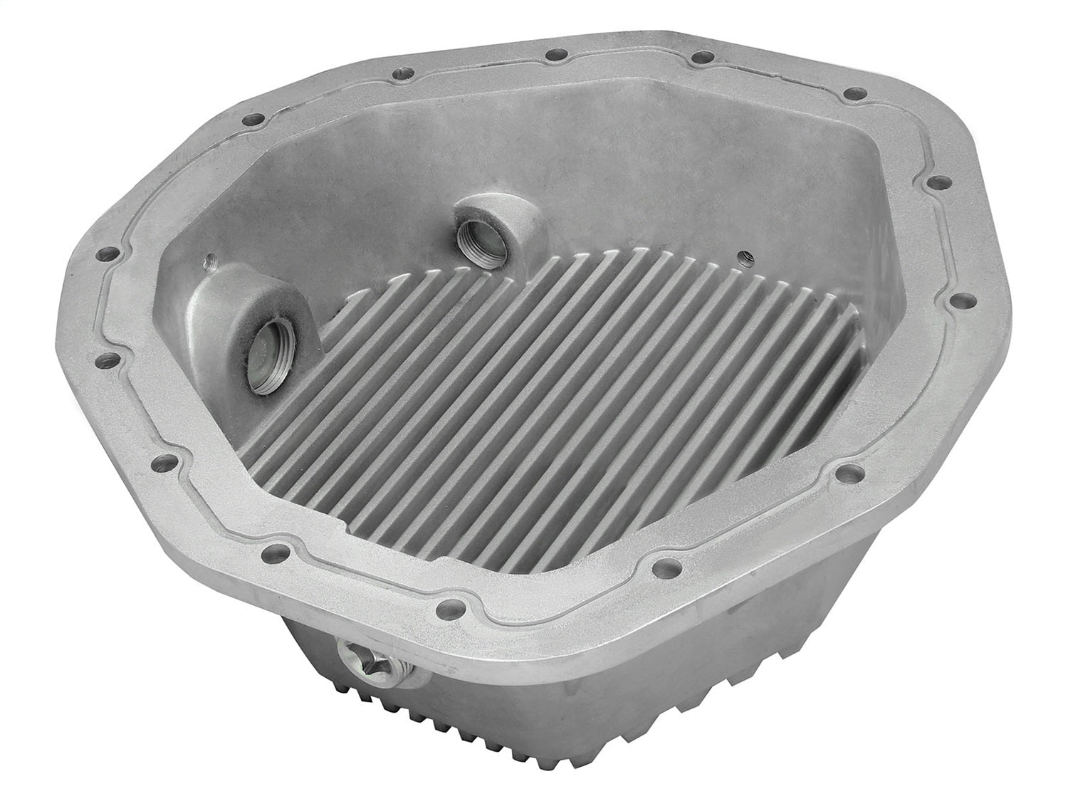 aFe Powers new rear differential cover brings performance engineering to the protection of your axles differential. This differential cover is constructed out of durable die cast A380 aluminum with reinforced ribs and wrinkle black powder coating for maximum strength and styling. This cover comes with all necessary hardware and includes an o-ring for a leak free seal. This cover has about a 3-1/2 quart lube capacity at the factory line. Built-in internal and external fins transfer heat from the fluid to the outside air for maximum cooling. This system incorporates a large magnetic drain and fill plug that captures loose particles for maximum rear-end protection. Pre-installed large oil level sight glass with calibration plug set to the factory fluid level to eliminate overfilling.