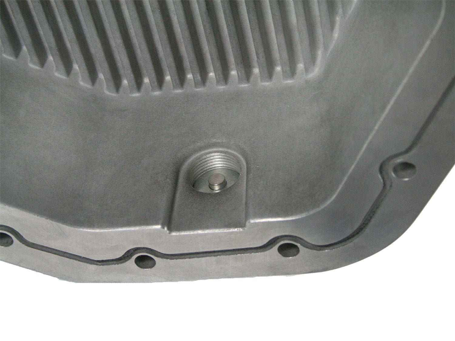 aFe Powers new rear differential cover brings performance engineering to the protection of your axles differential. This differential cover is constructed out of durable die cast A380 aluminum with reinforced ribs and wrinkle black powder coating for maximum strength and styling. This cover comes with all necessary hardware and includes an o-ring for a leak free seal. This cover has about a 3-1/2 quart lube capacity at the factory line. Built-in internal and external fins transfer heat from the fluid to the outside air for maximum cooling. This system incorporates a large magnetic drain and fill plug that captures loose particles for maximum rear-end protection. Pre-installed large oil level sight glass with calibration plug set to the factory fluid level to eliminate overfilling.