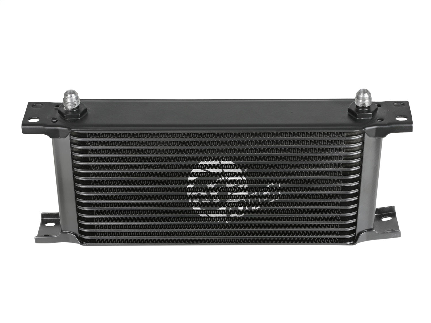 This BladeRunner Oil Cooler uses a durable brazed all-aluminum stacked-plate construction that allows for greater efficiency and lower pressure drop than a standard tube-fin design. The included hoses are heavy-duty, high-temperature, and high-pressure rated. This kit is suitable for use with engine oil, transmission oil, power steering fluid, and more. This BladeRunner Oil Cooler makes installation simple with aluminum universal mounting brackets, stainless steel hardware, and leak-proof AN connections. BladeRunner Oil Coolers feature a durable black powder coated finish with a laser-etched aFe POWER logo on the front and include black-anodized billet aluminum AN fittings for a sleek appearance.
