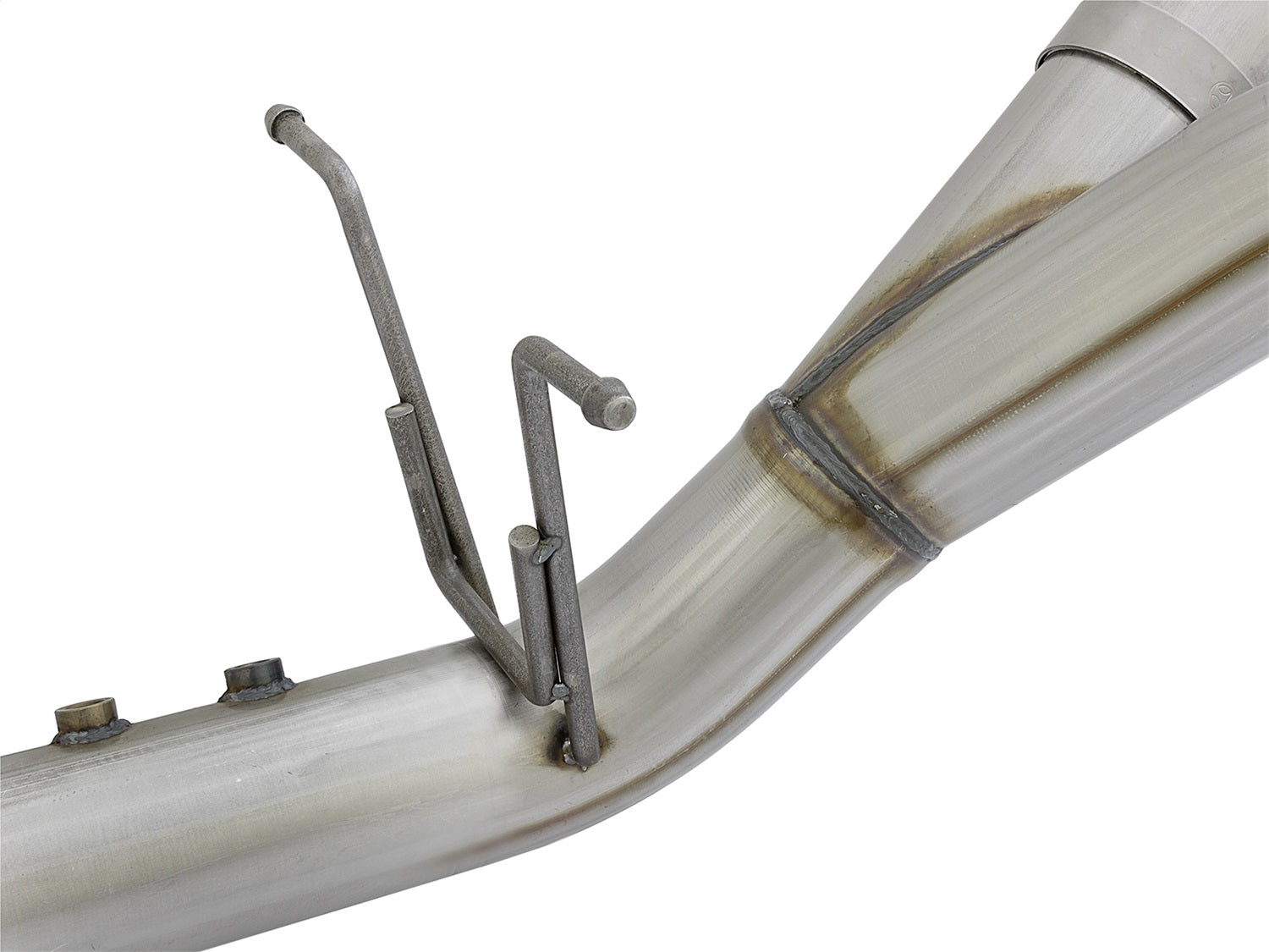 Interested in a new exhaust system for your L5P Duramax? Check out the ATLAS dual DPF-Back exhaust system by aFe. This system is constructed from 4" mandrel-bent aluminized steel tubing and uses high quality band clamps and OE-style bayonet hangers. This unit uses all factory mounting locations and comes with a bolt-on bracket that supports the driver side tailpipe. This provides for a quick, hassle-free installation with no modification necessary. Also included in this exhaust system are dual massive 6" polished 304 stainless steel tips with laser-cut stainless steel aFe power badges. ATLAS exhaust systems are the perfect combination of performance, fit and value. Single To Dual Exhaust Conversion: This exhaust is designed to convert the standard single exhaust into an aggressive dual exhaust. Fits With Spare Tire: This exhaust system fits perfectly without relocating the spare tire. OE Fit: OE-style bayonet hangers are used to maintain a stable pipe location during high vibration and high heat conditions. The bayonet tip holds the hanger bushing in place for an OE style fit that does not change with time. Flow and Performance: This ATLAS exhaust system is constructed of 4" mandrel-bent aluminized steel tubing for maximum flow. Smooth transition bends allow for low turbulence, increasing horsepower, torque and lowering EGT's. Polished Tips: Finishing off the exhaust are dual high luster, polished 304 stainless steel slash-cut tips. This tip features a laser-cut stainless steel aFe power badge for an aggressive style.