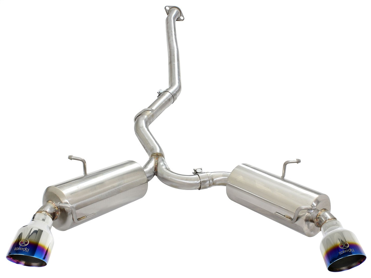 aFe is proud to introduce the Takeda Dual Cat-Back Exhaust System. This exhaust system in testing, produced a max gain of +5 horsepower and +6 ft. lbs. of torque verified by our in house dyno. The exhaust system is constructed from 2-1/2" mandrel bent 304 stainless steel and is 100% TIG-welded. This system was designed and engineered by tuning the perfect tube lengths, ultimately maximizing performance across the power band while maintaining a great tone. To finish off this exhaust are two 4.75" blue flame tips. This exhaust design uses all factory hanger locations for a hassle free installation. No modifications necessary.