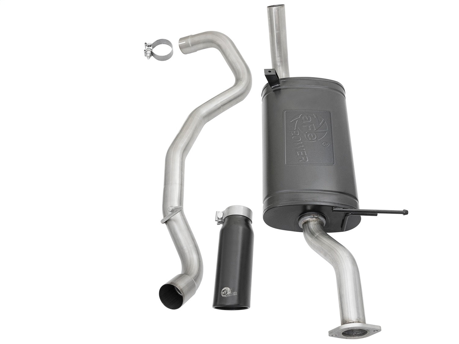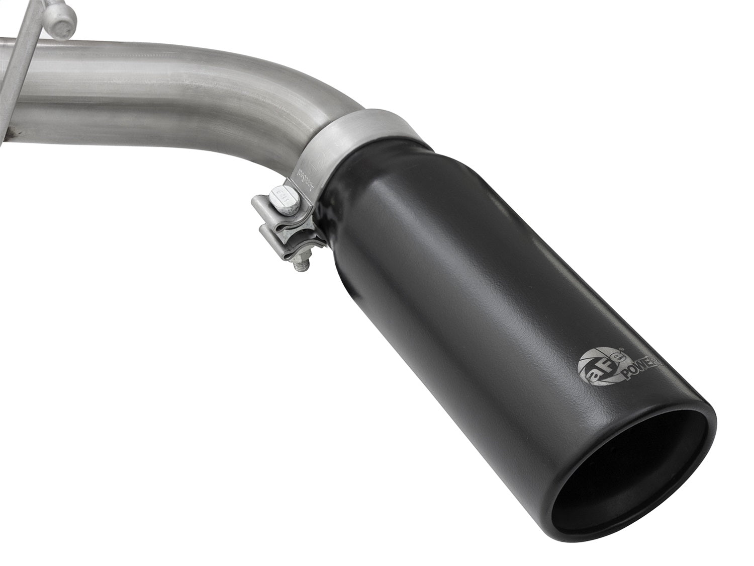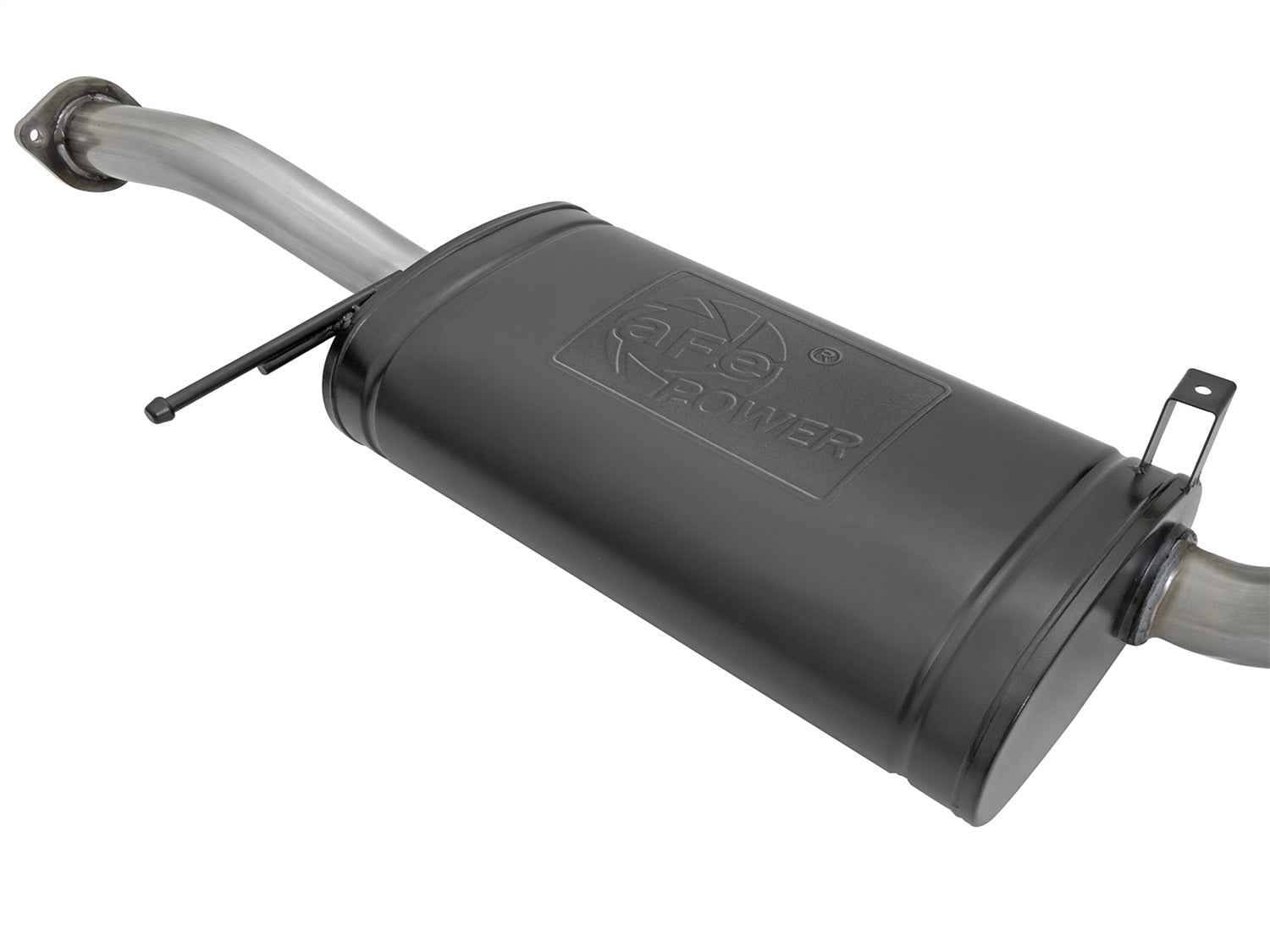 This MACH Force-Xp Cat-Back exhaust system is constructed of 2-1/2" mandrel-bent stainless steel tubing and comes complete with free-flowing stainless steel, high temp black powder-coated muffler, OE style bayonet hangers, band clamps and necessary hardware for a hassle-free installation. The smooth curves and increased diameter of this exhaust system helps remove restriction and keeps exhaust gas flowing smoothly for increased horsepower and torque. This system produced +11 horsepower and +22 lbs. x Ft. (*Dyno results from 49-36115-B/P) of torque over the stock exhaust system verified by our in house dyno. The system is finished off with a side exit 4" dia. black, stainless steel tip for an aggressive style. Installation is a Snap: This MACH Force-Xp exhaust system use all factory mounting locations providing stability and a hassle-free installation. Leak-Free Seal: High quality OE-style flange and premium band clamps are used for a complete 360-degree sealing surface eliminating leak paths. Aggressive Sound: A free-flowing stainless steel, high temp black powder-coated 22" length muffler is used to absorb high pitch tones producing a powerful sound and unleashing all available horsepower and torque. Perfect Fit: OE-style bayonet hangers are used to maintain a stable pipe location during high vibration and high heat conditions. The bayonet tip holds the hanger bushing in place for an OE-style fit that does not change with time. Emissions Disclaimer: This product does not require a CARB EO# (Vehicle does not exist in U.S.). All aFe exhaust systems are engineered and manufactured in our Corona, California facility.