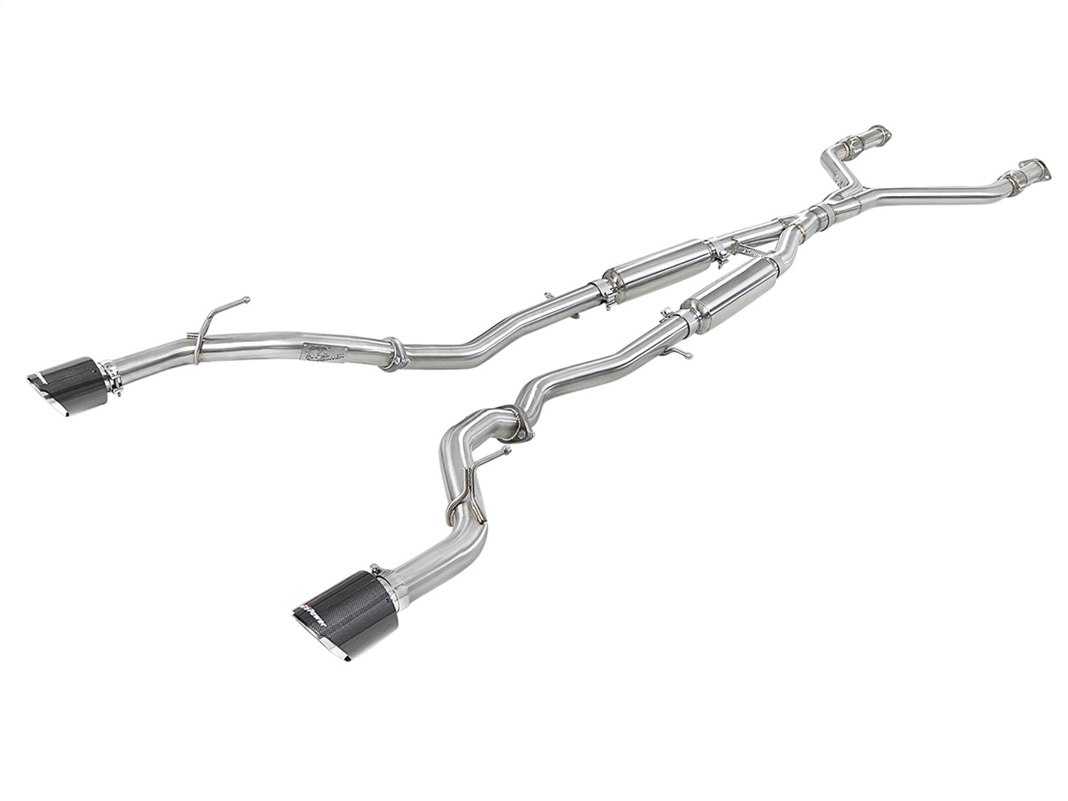 Dual, 4-1/2" Carbon Fiber Exhaust Tips: This dual rear-exit system features 4-1/2" round, double-wall, carbon fiber, clamp-on stainless steel exhaust tips with an aFe Power logo for a custom look. Optional black (PN 49T25454-B09), blue flame (49T25454-L07) and polished (PN 49T25454-P09) tips are sold separately.