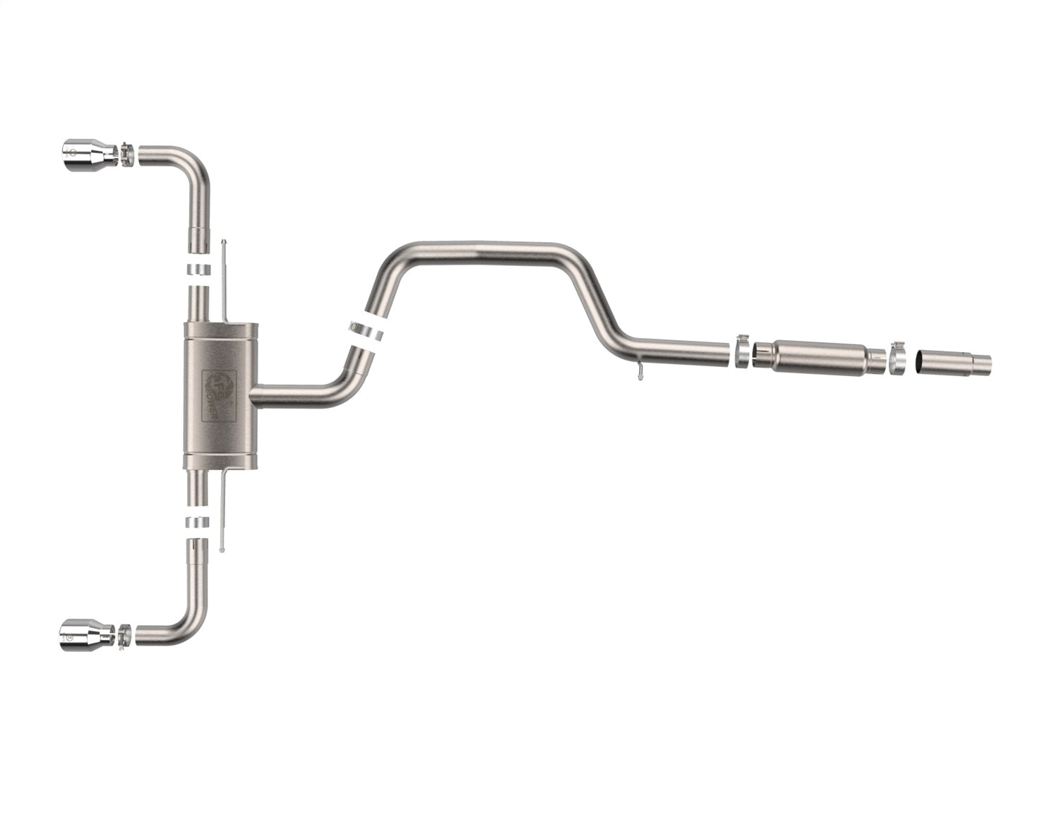 This cat-back exhaust system is constructed of 3" - 2-1/2" mandrel-bent 304 stainless steel tubing for maximum strength and durability. This system features a high-flow 304 stainless steel muffler, producing a aggressive sound. Finishing off this exhaust system are dual 4" diameter 304 stainless steel clamp-on exhaust tips. The tips features a laser etched aFe POWER logo for a unique style. This system produces an aggressive sound unleashing all available horsepower and torque. Utilizing factory style hangers this system is a direct bolt-on system, which requires no cutting or modifications for a hassle-free installation