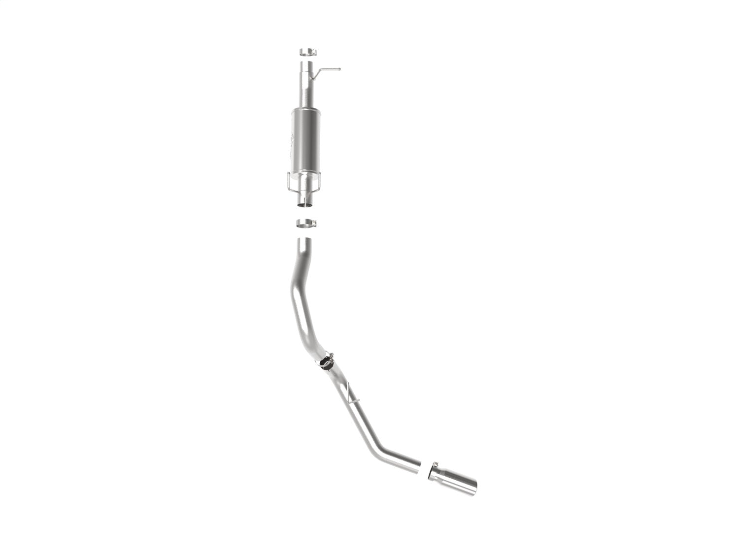 This axle-back exhaust system is constructed of 3-1/2" - 4" mandrel-bent 409 stainless steel tubing for maximum strength and durability. This system features a high-flow 409 stainless steel muffler, producing a throaty sound. Finishing off this exhaust system is a 6" diameter polished stainless steel clamp-on exhaust tip. The tip features an aFe POWER logo plate riveted on for a unique style. This system produces a throaty sound unleashing all available horsepower and torque. Utilizing a factory style flange and hangers this system is a direct bolt-on system, which requires no cutting or modifications for a hassle-free installation. Utilizing state-of-the-art computer-aided design technology, this exhaust system is designed for custom, high tolerance factory fitment. 100% MIG-Welded for race-proven strength and durability.