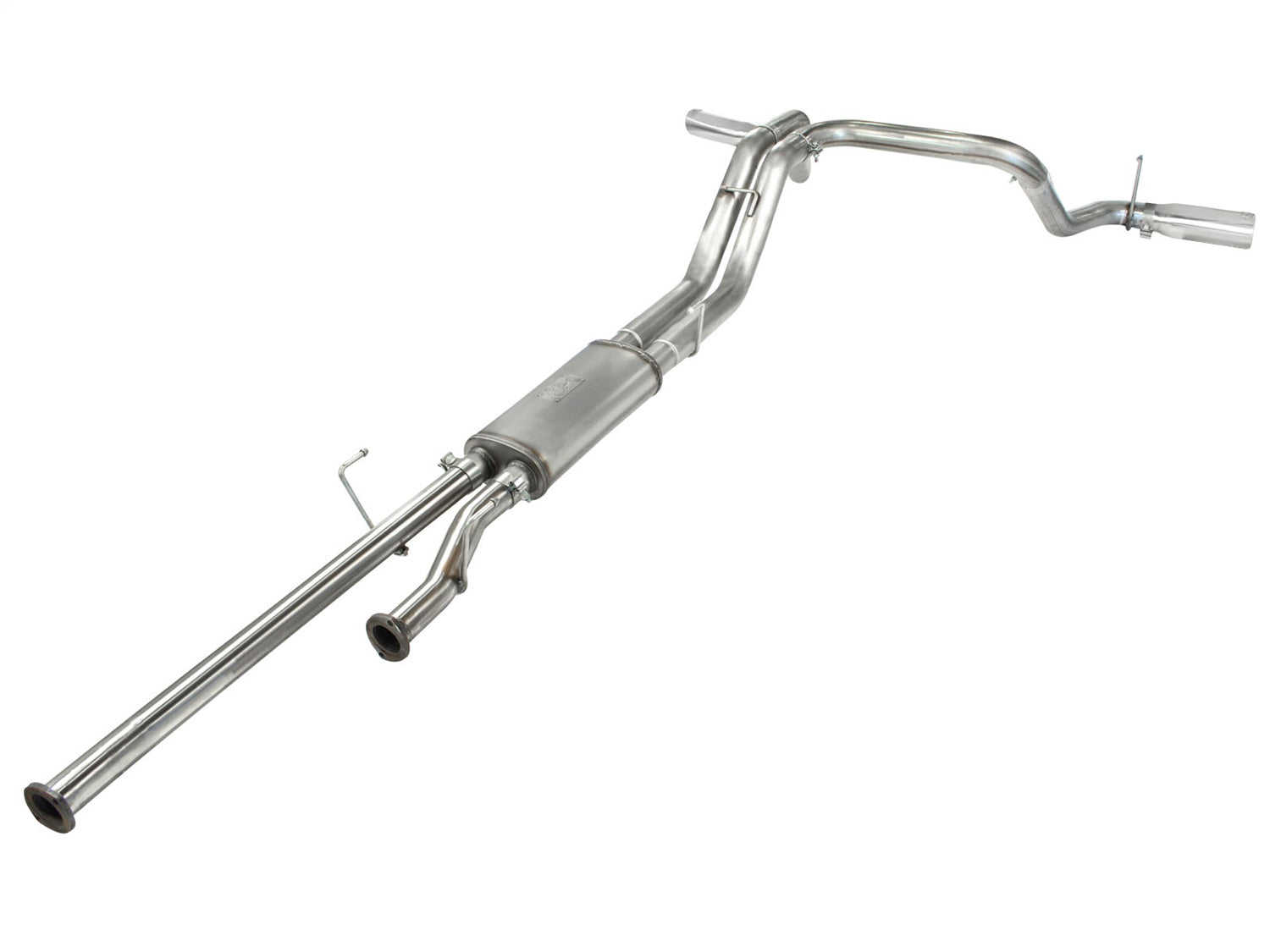 The new MACH Force XP exhaust is engineered to perform in the most extreme environments. This system is constructed from mandrel bent 4 in. 409 stainless steel tubing for maximum flow; increased horsepower; increased torque; and lower EGTs. MACH Force XP exhaust systems are the perfect combination of performance; fit; and value. All systems use factory mounting locations providing stability and hassle-free installation. High quality OE style band clamps are used for a complete 360 deg. sealing surface. A free-flowing 24 in. long muffler is used to absorb high pitch tones producing a powerful sound and unleashing all available horsepower and torque out of your rig. OE style bayonet hangers are used to maintain a stable pipe location during high vibration and high heat conditions. The bayonet tip holds the hanger bushing in place for an OE style fit that does not change with time.