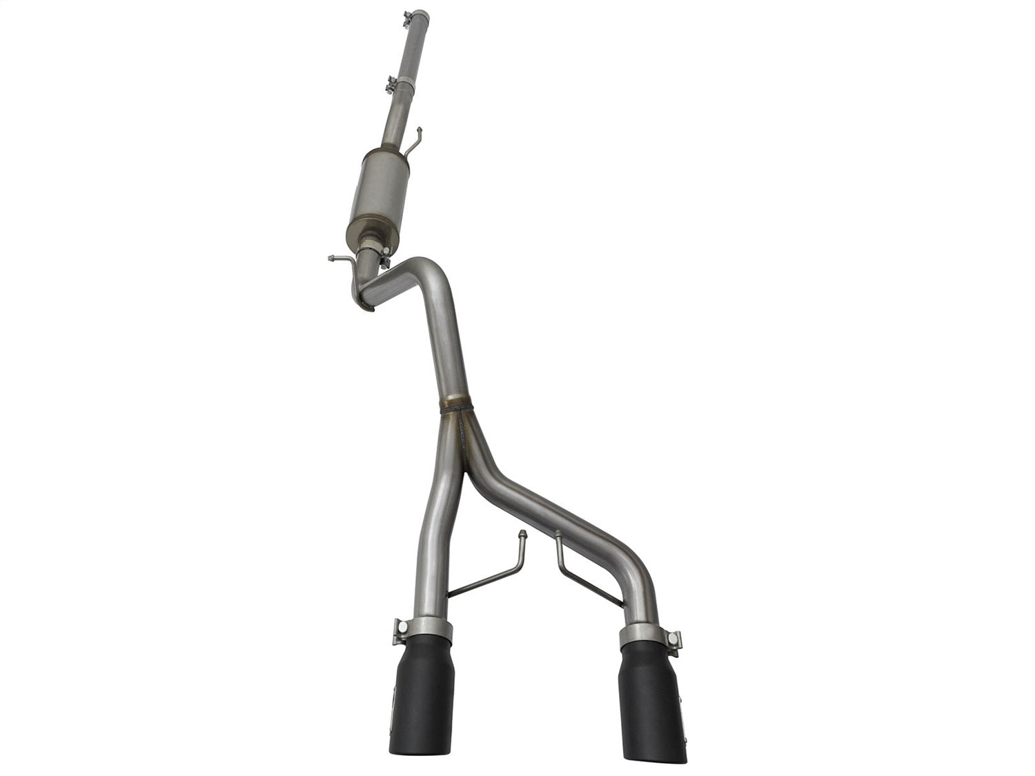 Introducing an all new Rebel Series Dual Wide Center Exit Cat-Back exhaust system for the 2007-2017 Jeep Wrangler (JK) with V6-3.6L/3.8L engine. This unique Rebel Series exhaust system is designed with dual wide center exit tips an aggressive look. The unique wide stance allows the exhaust system to fit with the factory tow hitch for a hassle-free installation. The Tips are 4-1/2" with aFe power plates and constructed out of stainless steel for durability. This performance cat-back exhaust is constructed of 2-1/2" MIG-welded mandrel-bent stainless steel tubing. The smooth curves and increased diameter of this exhaust system helps remove restriction and keeps exhaust gas flowing smoothly for increased horsepower, torque and throttle response. In testing, this cat-back exhaust system added an astounding +9 horsepower and +14 lbs. x ft. of torque as verified by our in house dyno. This exhaust system comes complete with a free-flowing muffler, OE style bayonet hangers, band clamps and all hardware necessary for a hassle-free installation. This system incorporates a high-flow stainless steel muffler which produces an aggressive exhaust tone. Finishing off the exhaust are dual 4-1/2" black stainless steel clamp-on tips with aFe power plates riveted on the side for an aggressive style. The tips are designed to exit from the center of the vehicle for a unique custom look with a wide stance which allows for tow hitch fitment for a hassle-free installation. This Rebel Series exhaust system is constructed of 3" into Dual 2-1/2" mandrel bent stainless steel tubing for maximum flow. Smooth transition bends allow for low turbulence, increasing horsepower and torque. A high quality OE style flange and band clamps are used for a complete 360 degree sealing surface. This performance cat-back exhaust is designed to be a true bolt on system with no cutting or modifications required. All hardware and clamps are included for a hassle-free installation.