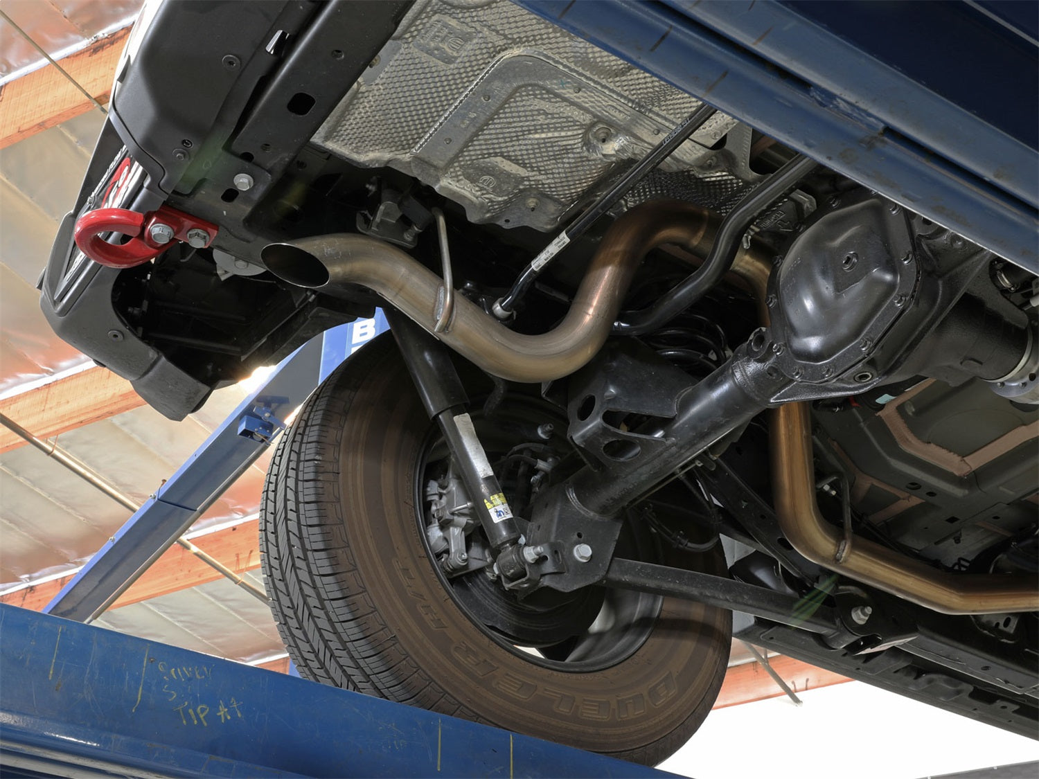 aFe POWER Mach Force-Xp axle-back exhaust system delivers form and function to your Jeep JL. This efficient, 2 1/2" mandrel-bent Hi-Tuck system delivers extra ground clearance when off-roading by replacing the stock, low-hanging muffler assembly. This stainless steel system utilizes the factory front resonator pipe to produce a very aggressive exhaust tone unleashing all available horsepower and torque.