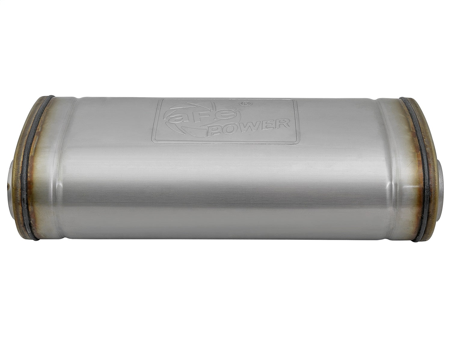 Wake up your stock exhaust or build your own custom exhaust system with aFe's stainless steel, universal fit MACH Force-Xp muffler. Designed to provide a deep, throaty, powerful sound on acceleration yet maintain a smooth sound at idle. Constructed of 409 stainless steel, the MACH Force-Xp muffler uses a straight through, Y-pipe, perforated core with heat resistant packing to reduce backpressure and maximize exhaust flow for performance and sound improvements over the factory exhaust.
