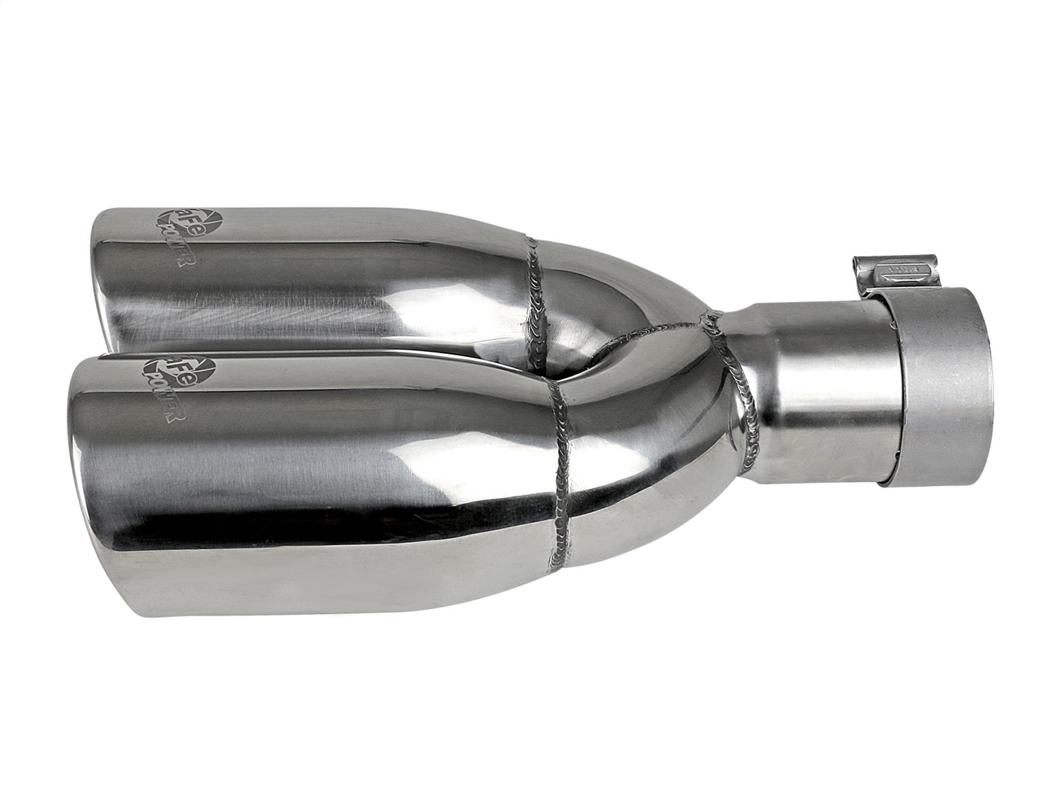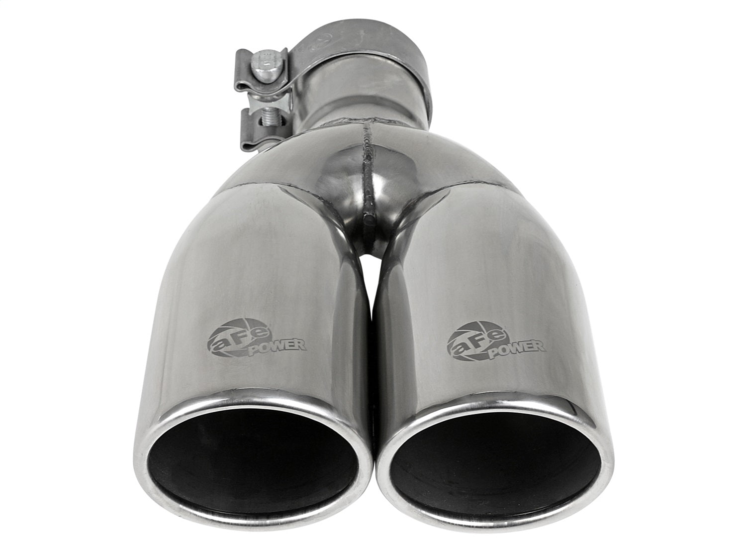 Stainless Steel Construction: This direct-fit clamp-on tip is constructed from 304 stainless steel and features a polished finish for corrosion resistance for long lasting good looks. Universal Clamp-On Tip: Designed to fit 2-1/2 in. exhaust systems; 2-1/2 in. inlet x 3-1/2 in. outlet and 12 in. inch length. aFe POWER Logo: This tip features an aFe POWER logo for an aggressive, custom look. Leak-Free Seal: A high quality stainless steel clamp is used for a complete 360 degree sealing surface.