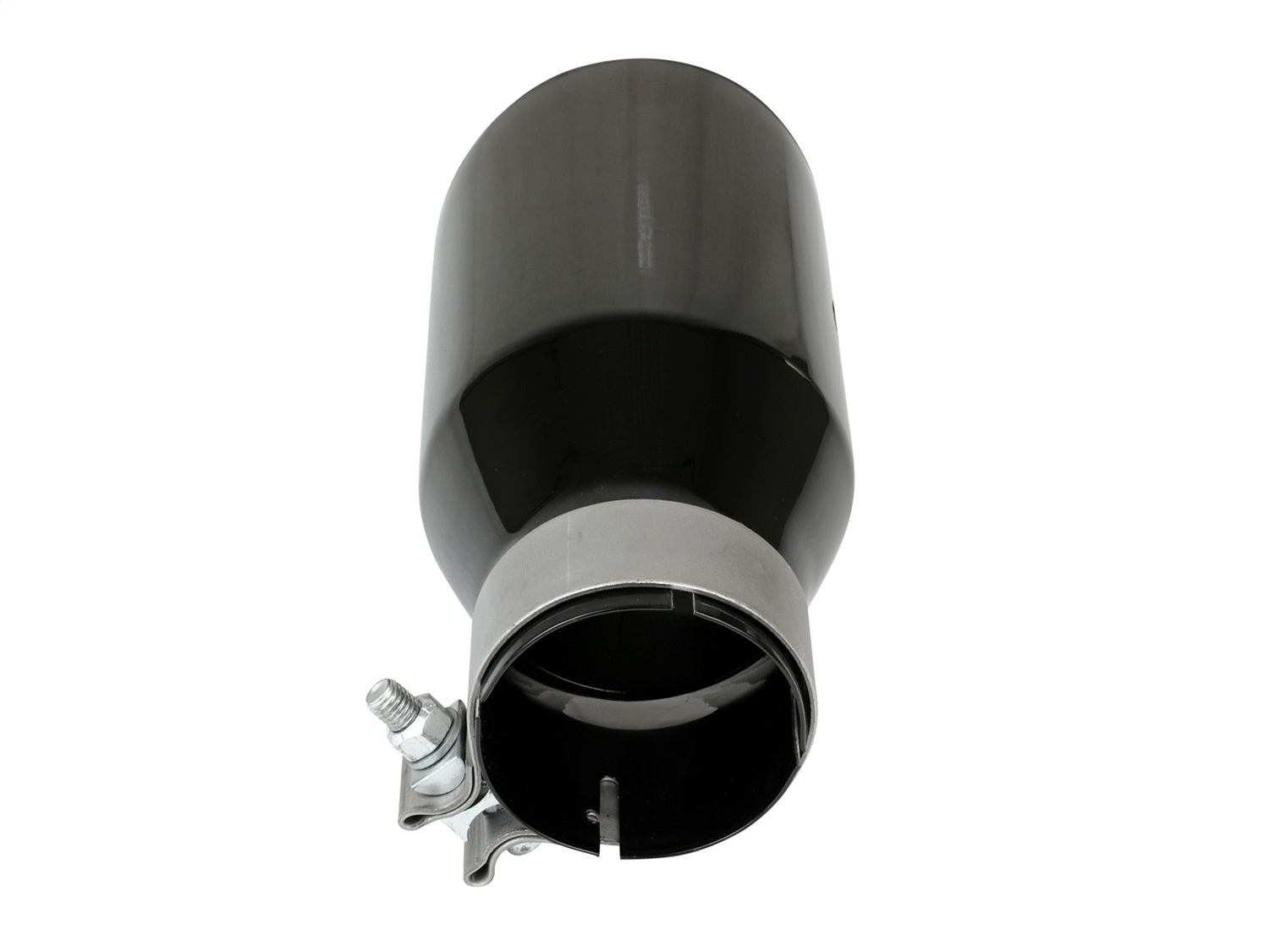 This direct-fit clamp-on tip is constructed from 304 stainless steel and features a black finish for corrosion resistance for long lasting good looks. Designed to fit 3" exhaust systems; 3" inlet x 4-1/2" outlet and 9" inch length. This tip features a laser etched aFe POWER logo for an aggressive, custom look. A high quality stainless steel clamp is used for a complete 360 degree sealing surface.
