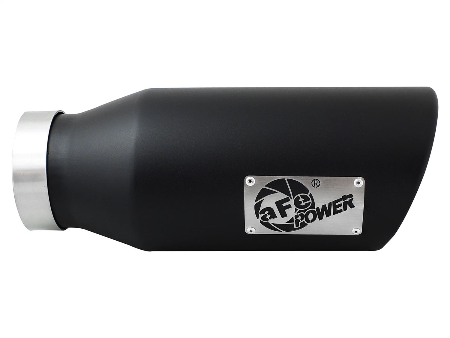 aFe Power is proud to introduce the all new diesel exhaust tip. This tip comes with a black finish and is designed to fit 4" exhaust systems. With a 4" inlet x 6" outlet and 15" inch length, this single-walled, angle cut rolled tip comes with a unique laser-cut aFe Power logo plate riveted on for an aggressive style. Leak-Free Seal: A high quality stainless steel band clamp is used for a complete 360 degree sealing surface. aFe Badging: The exhaust tip comes with a unique laser-cut aFe Power logo plate riveted on for an aggressive style.