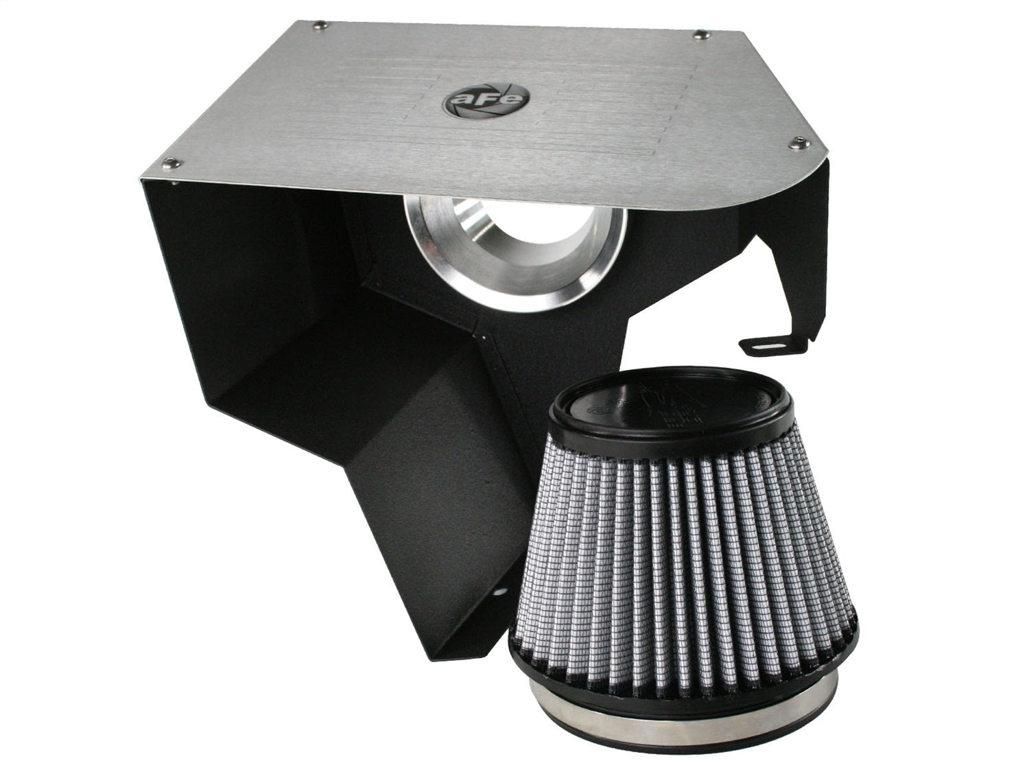 Maximum performance within minutes is what this aFe Stage 1 cold air intake system delivers. Enclosed in a durable 16 gauge heat shield; a massive washable/reusable; 360 deg. conical Pro 5R air filter increases airflow resulting in an additional 6 hp; and 7 lbs./ft/ torque. This intake system also features a unique 3-angle adaptor for increased air velocity. The Pro 5R air filter is constructed with 100 percent polyurethane for long life and multiple cleaning cycles. This intake is the easiest intake on the market to install. Simply remove the factory intake and mount the 3-angle adaptor with the air filter to the MAF sensor tube and you are breathing more air and producing more power.