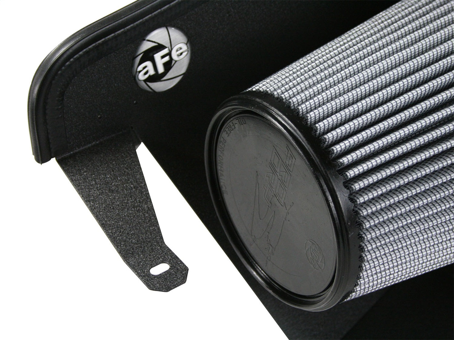 Maximum performance within minutes is what this aFe Stage 1 cold air intake system delivers. Enclosed in a durable 16 gauge heat shield; a massive washable/reusable; 360 deg. conical Pro 5R air filter increases airflow resulting in an additional 6 hp; and 7 lbs./ft/ torque. This intake system also features a unique 3-angle adaptor for increased air velocity. The Pro 5R air filter is constructed with 100 percent polyurethane for long life and multiple cleaning cycles. This intake is the easiest intake on the market to install. Simply remove the factory intake and mount the 3-angle adaptor with the air filter to the MAF sensor tube and you are breathing more air and producing more power.