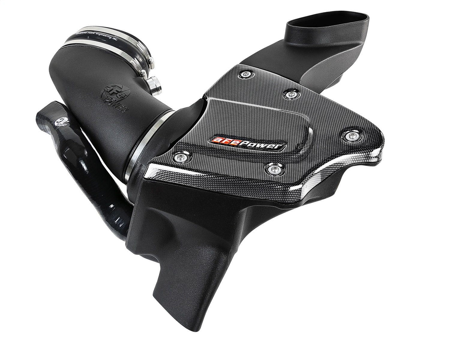 Unique One-Piece Sealed Housing: A custom CAD designed roto-molded housing made high quality plastic eliminates the use of multiple components and ensures the coolest air intake charge available. The roto-molded housing is made out of black cross-linked polyethylene. Carbon Fiber Finish Trim Cover: This carbon fiber finish trim cover is constructed with lightweight vacuumed formed ABS plastic for underhood appearance. High Quality Tube: This system uses a high quality plastic CAD designed, dyno-tuned, roto-molded intake tube to achieve maximum power gains while maintaining a perfect fit. This tube has a built-in resonance chamber to catch un-wanted air intake noises. Large 3-Layer "Oil-Free" Performance Air Filter: This sealed intake system utilizes an oil-free, large 6" tall conical inverted top 360 degree radial flow performance air filter with 3-Layer progressively finer porosity synthetic media for maximum convenience. Premium Hardware: Premium hardware and clamp are used to securely mount the high flow air filter and the intake tube. This sealed intake system is designed with fewer parts for a quick and simple installation.