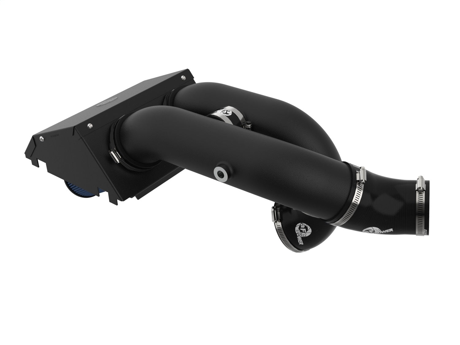 The aFe POWER Pro 5R air filters are pre-oiled and are 8” tall with 360-degree radial flow performance and five layers of progressively fine cotton gauze media for maximum airflow and protection. They provide your engine with the largest amount of high-flowing air, usually resulting in the highest power gains out of all our filter media options. This media is perfect for street and/or track use. Dual one-piece 3-1/2" mandrel-bent wrinkle-black powder-coated aluminum intake tubes direct unrestricted airflow from the massive filters to the turbos for more horsepower and torque. aFe developed this lightweight aluminum wrinkle-black powder-coated heat shield to snap onto the top of the lower half of the factory airbox to provide a hassle-free installation utilizing factory mounting locations. A wrinkle-black powder-coated aluminum cover is used to finish off this intake and add a sense of style to your engine bay. Premium hardware and clamps are used to securely mount the high flow air filters and the intake tubes.