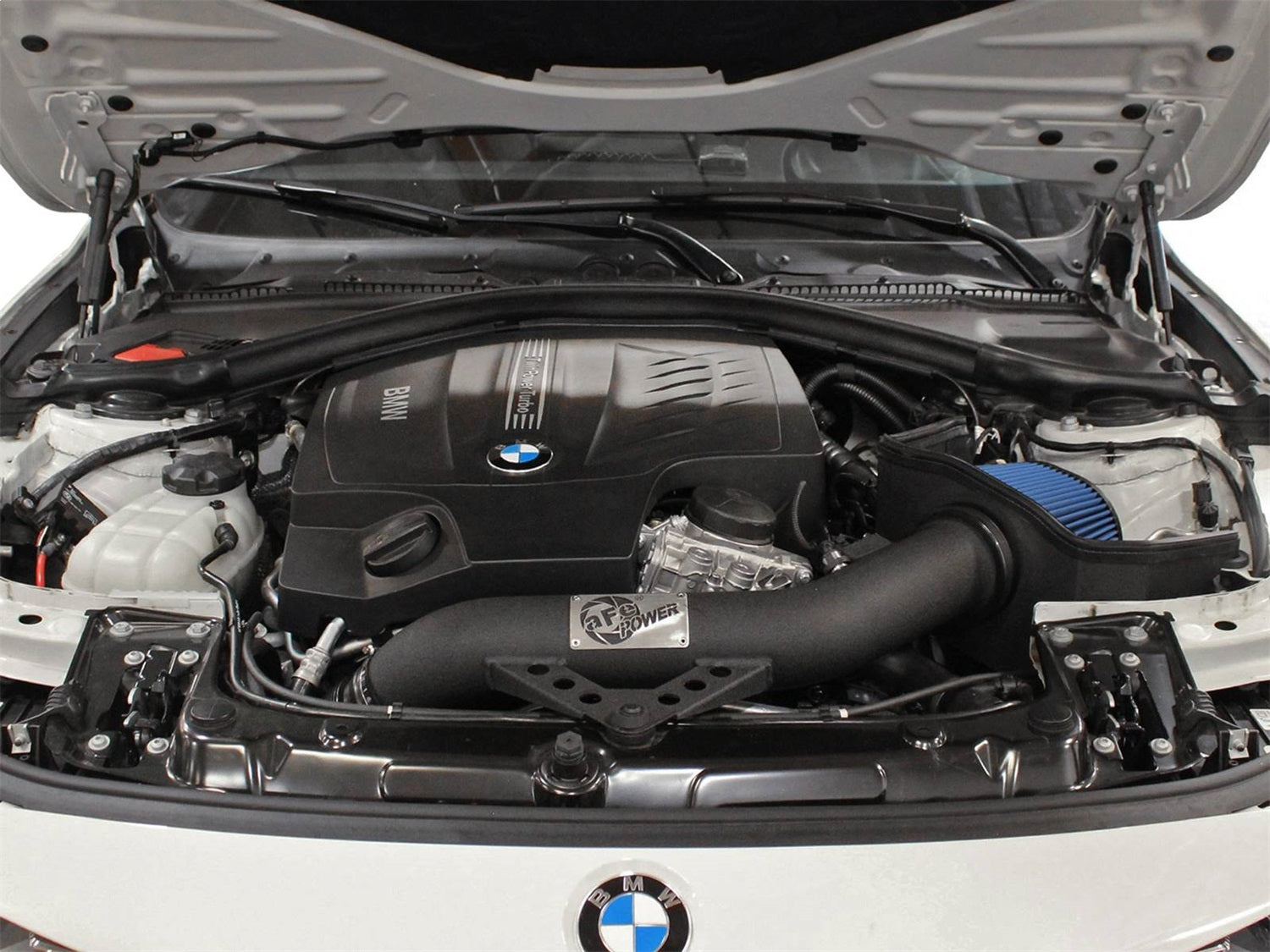 aFe is proud to introduce the all new stage-2 intake system for the ?12-?14 BMW 335i (F30) L6-3.0L (t). In recent testing this system outflowed the factory intake by 29% resulting in 14 max horsepower and 18 lbs x ft of torque gain. This highly engineered system features a one-piece, durable 18-guage, powder-coated heat-shield and massive 3.5? mandrel-bent, wrinkle-black powder-coated intake tube that direct air smoothly and aggressively to the engine. Improving airflow further is a large 6? tall washable/reusable conical air filter constructed with 100% polyurethane for long life and multiple cleaning cycles. The air filter uses a unique (patent pending) flange retention design that requires no hardware to mount the filter to the heat shield providing a quick hassle-free installation with minimal hardware. Order Now! Pro 5R (P/N: 54-12202) or PRO DRY S (P/N 51-12202).